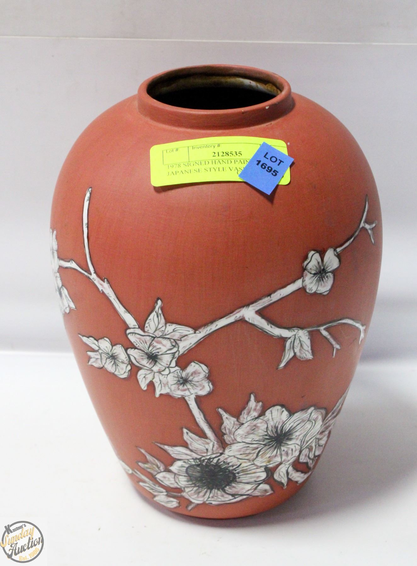 1978 SIGNED HAND PAINTED JAPANESE STYLE VASE