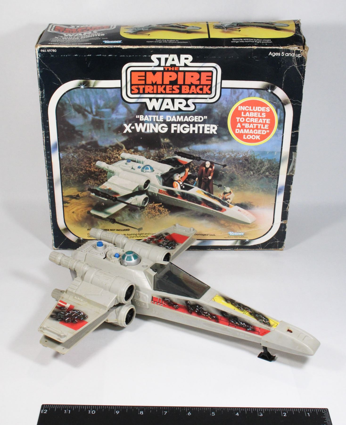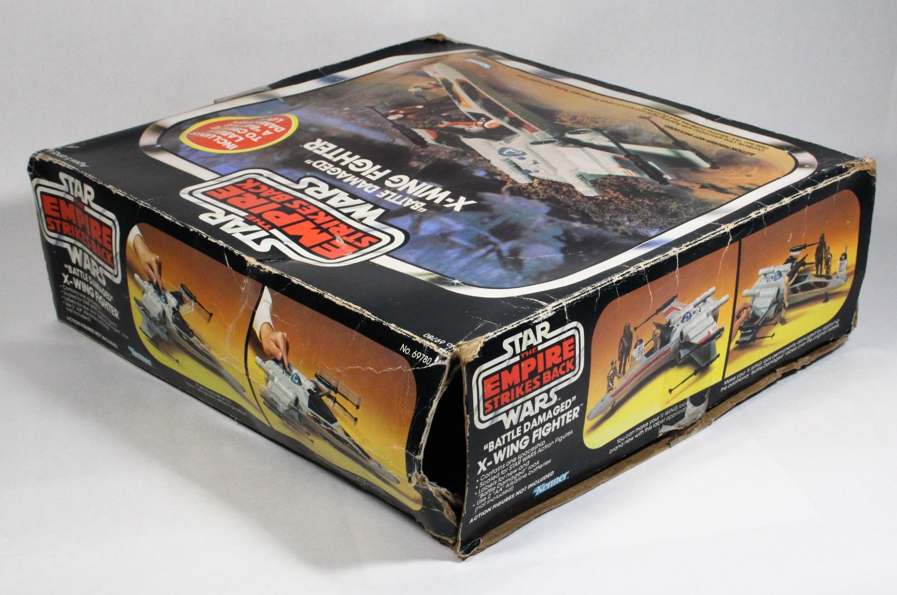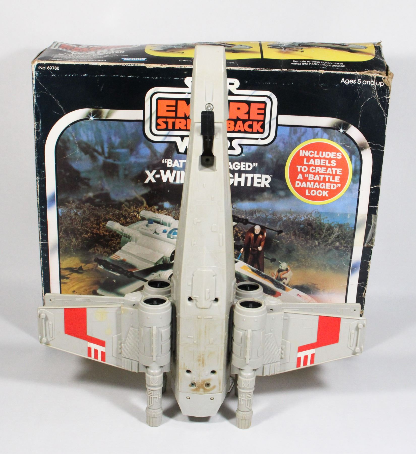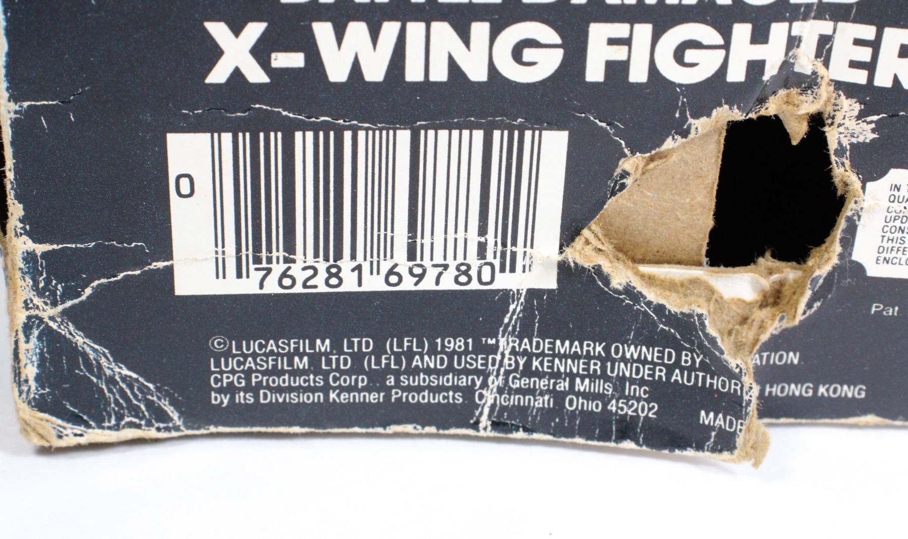 DAMAGED" X-WING FIGHTER WITH BOX. TOY IS INCOMPLETE. KENNER 1978
