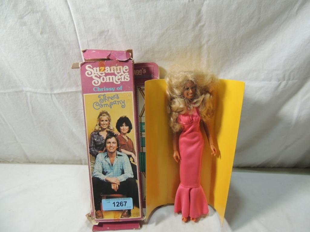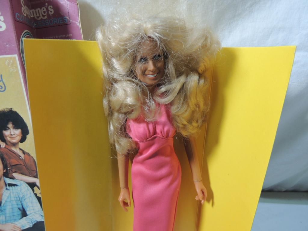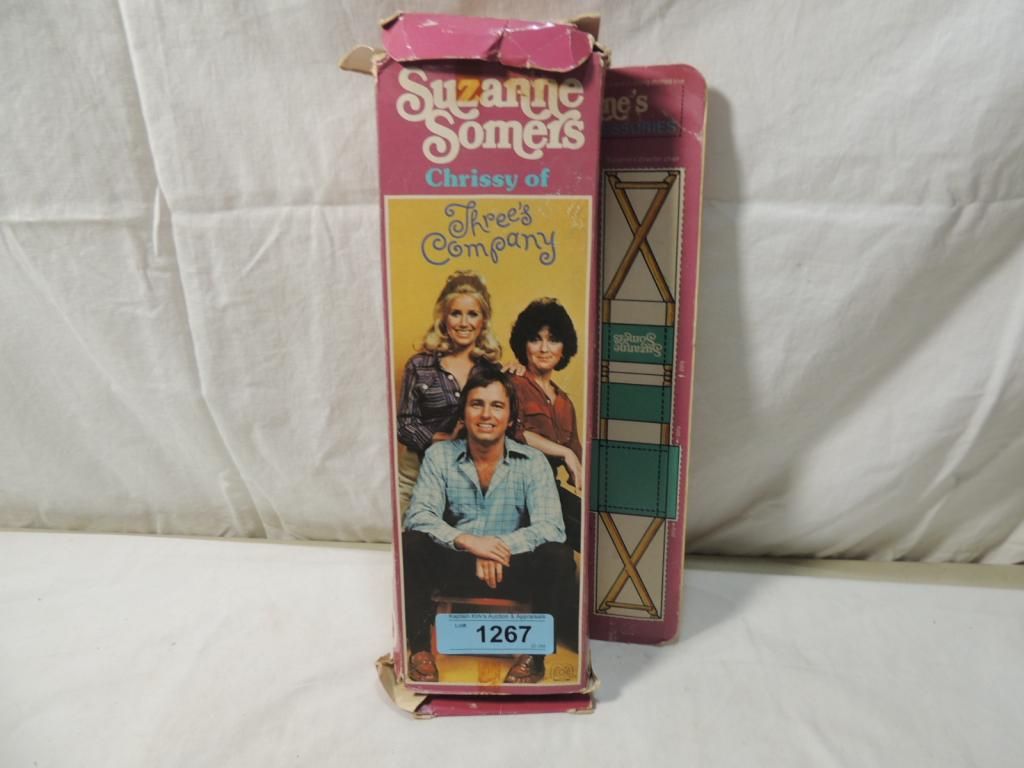 SUZANNE SOMERS CHRISSY OF THREES COMPANY VINTAGE DOLL IN BOX. FASHION DOLL. POSING STAND CUT OUT ACCESSORIES. AS SHOWN SEE PHOTO FOR MORE DETAILS.
