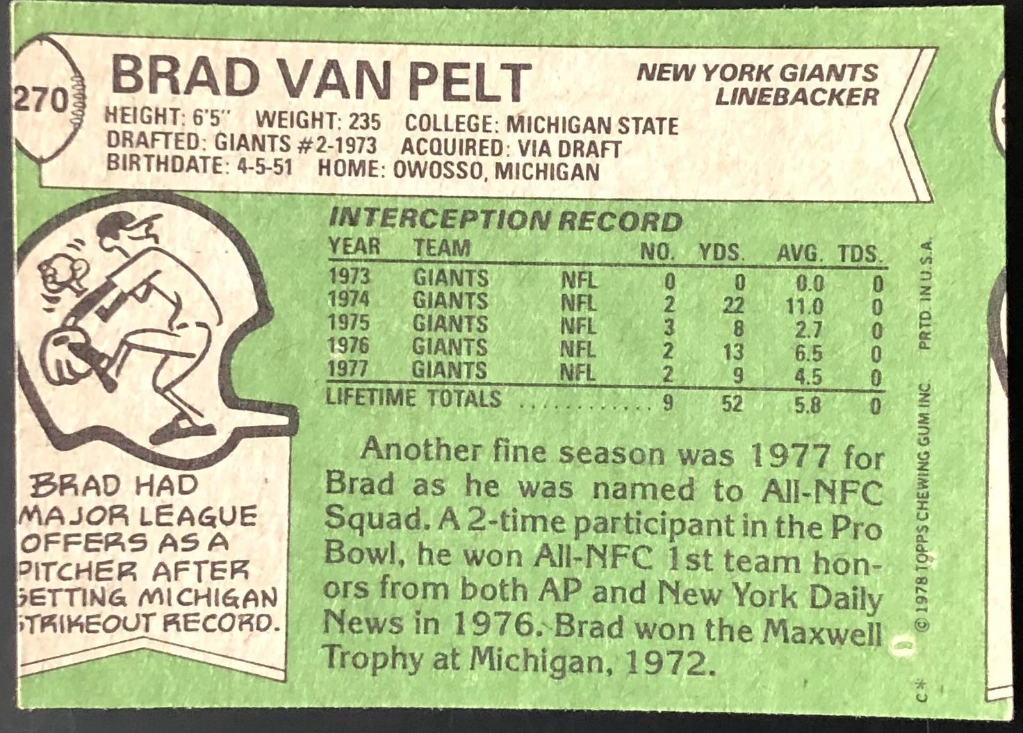 Card #270 NFL, football, vintage, hall of fame
