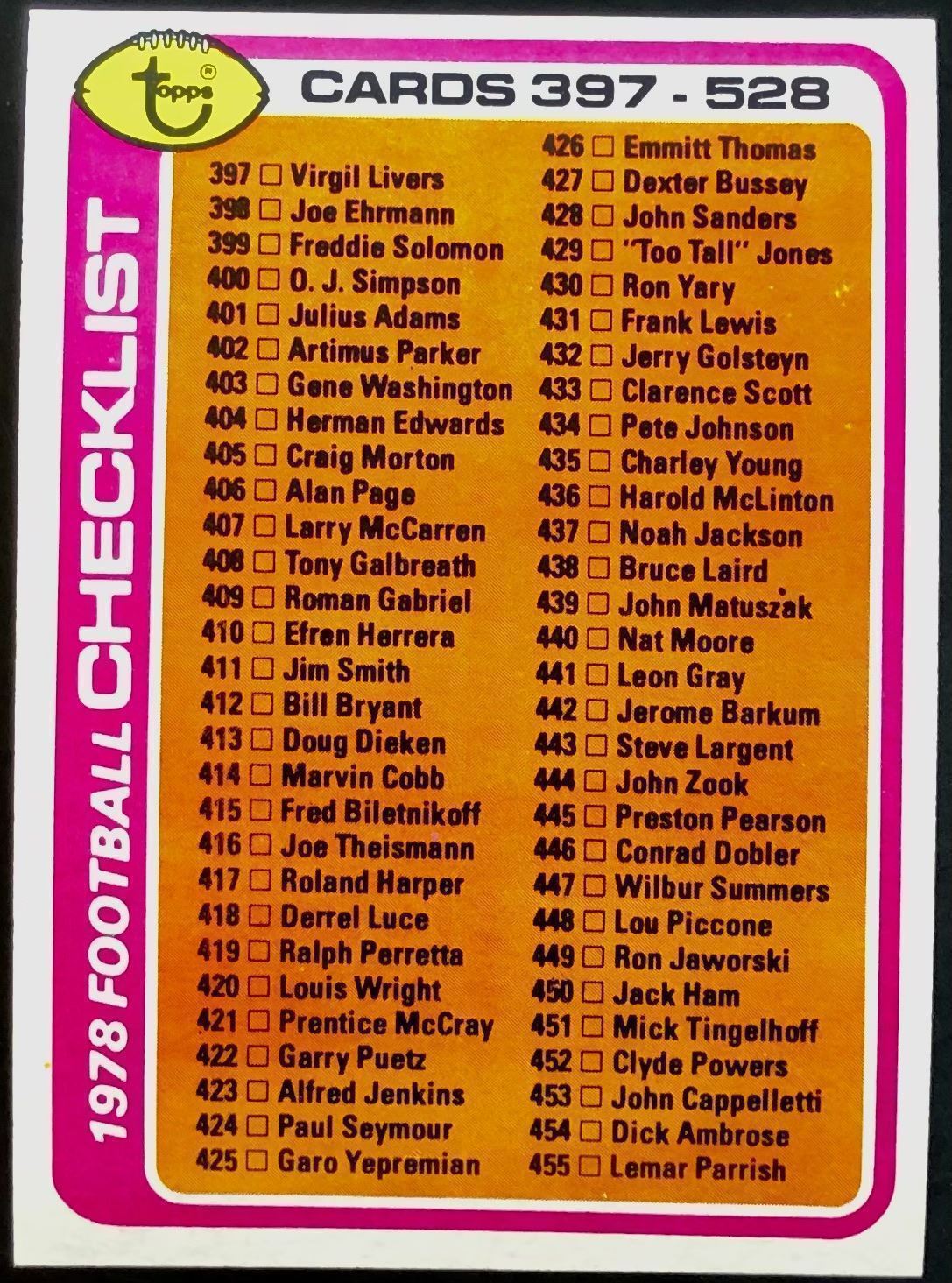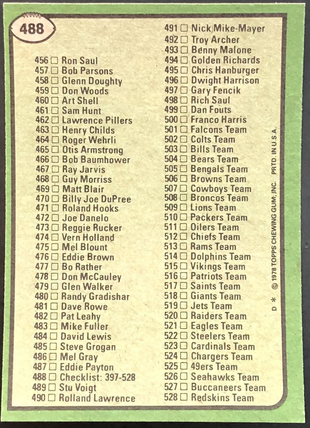 Card #488 football, vintage