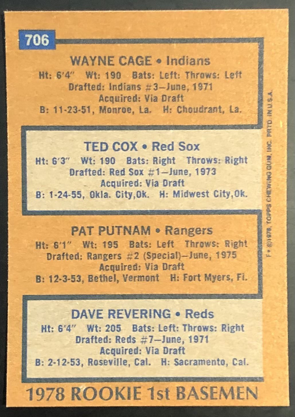 Card #706 MLB, baseball, vintage, rookie