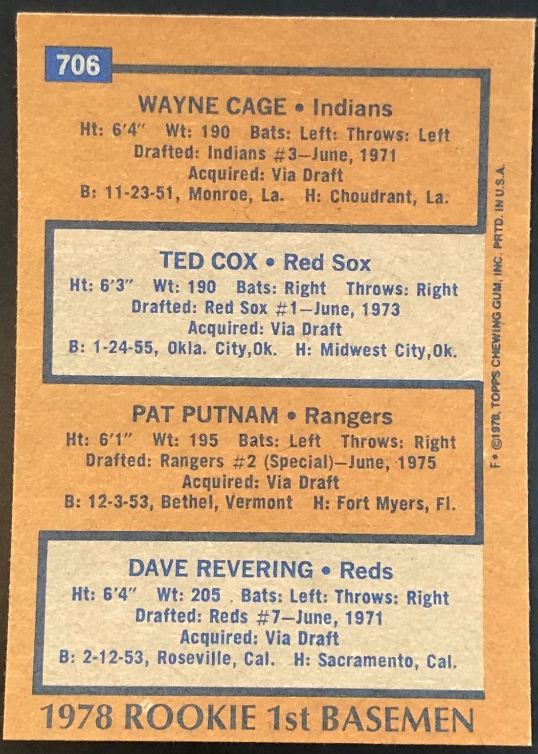 Card #706 MLB, baseball, vintage, rookie