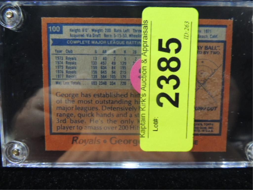 1978 TOPPS GEORGE BRETT BASEBALL PLAYER CARD. #100. TRADING CARD. AS SHOWN SEE PHOTO FOR MORE DETAILS.