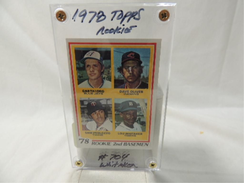 1978 TOPPS ROOKIE 2ND BASEMEN BASEBALL PLAYER CARD. # 704. GARTH IORG, DAVE OLIVER, SAM PERLOZZO, LOU WHITAKER. AS SHOWN. SEE PHOTO FOR ADDITIONAL DETAILS.