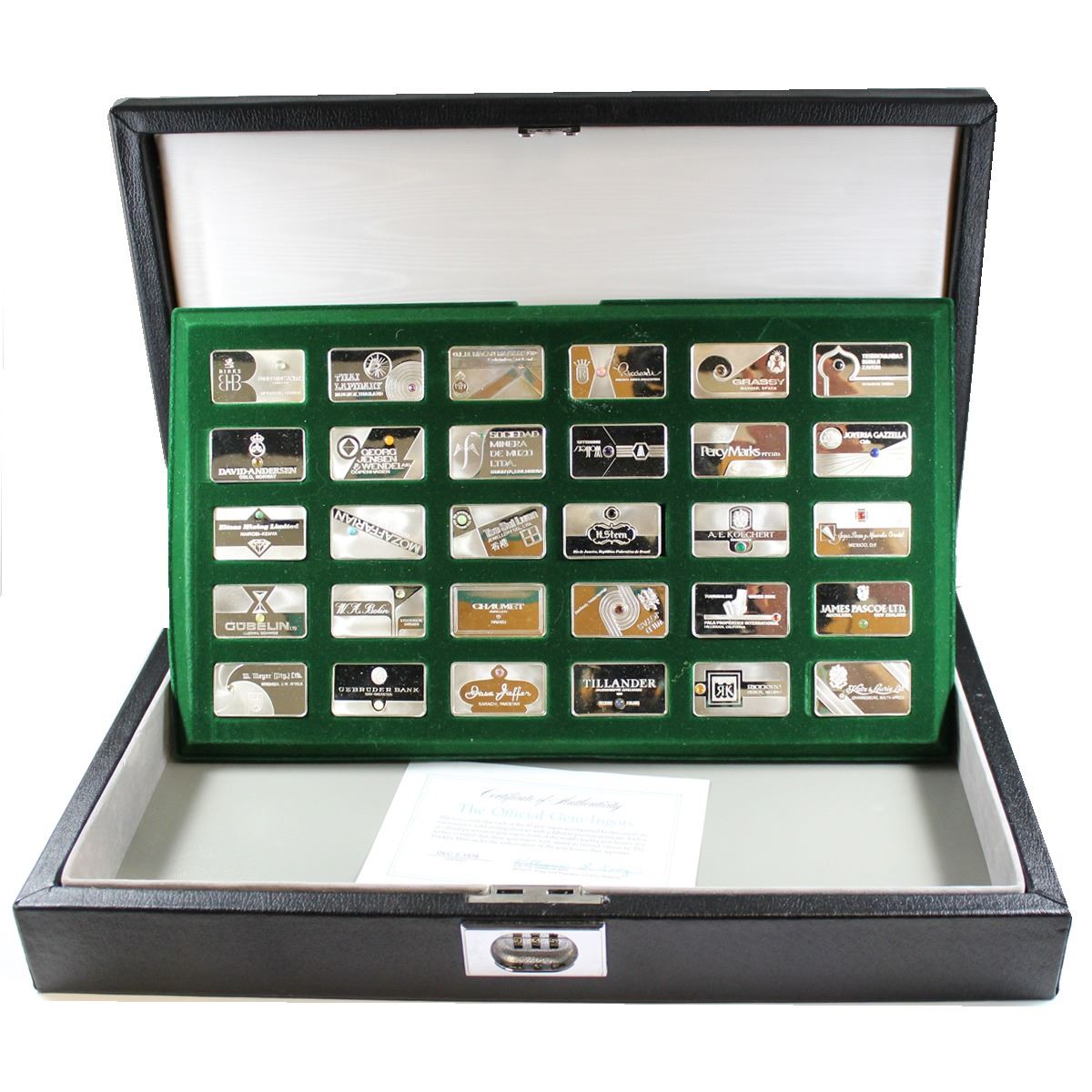 1978 The Official Gem-Ingots Sterling Silver Collection produced by The Franklin Mint. This set includes 30 Sterling Silver Ingots each with a different Gem, housed in the Deluxe Display Case with COAs. Please note 4 COAs are missing and bars may be toned or have small blemishes. The clasp on the outer case also does not lock.