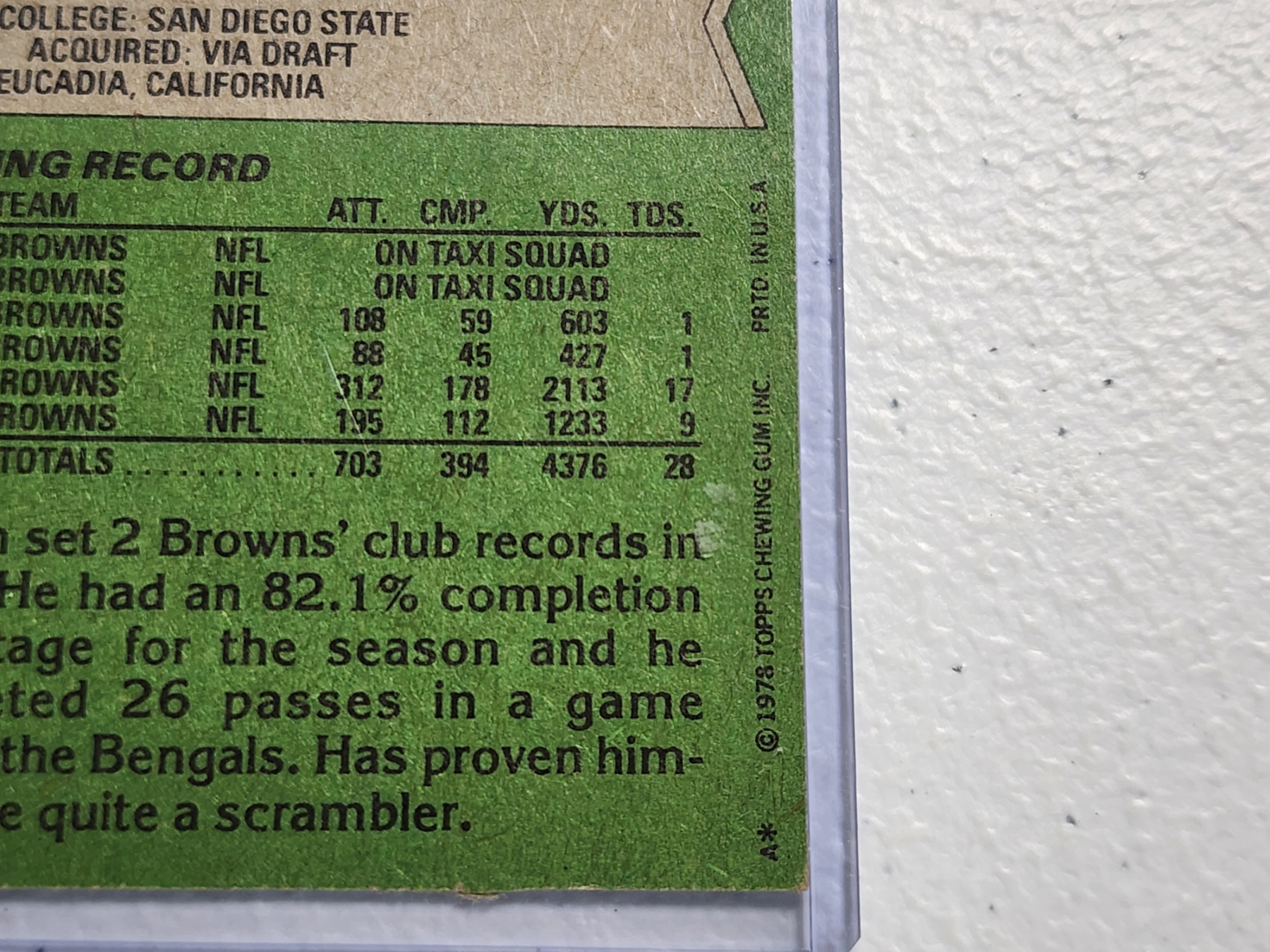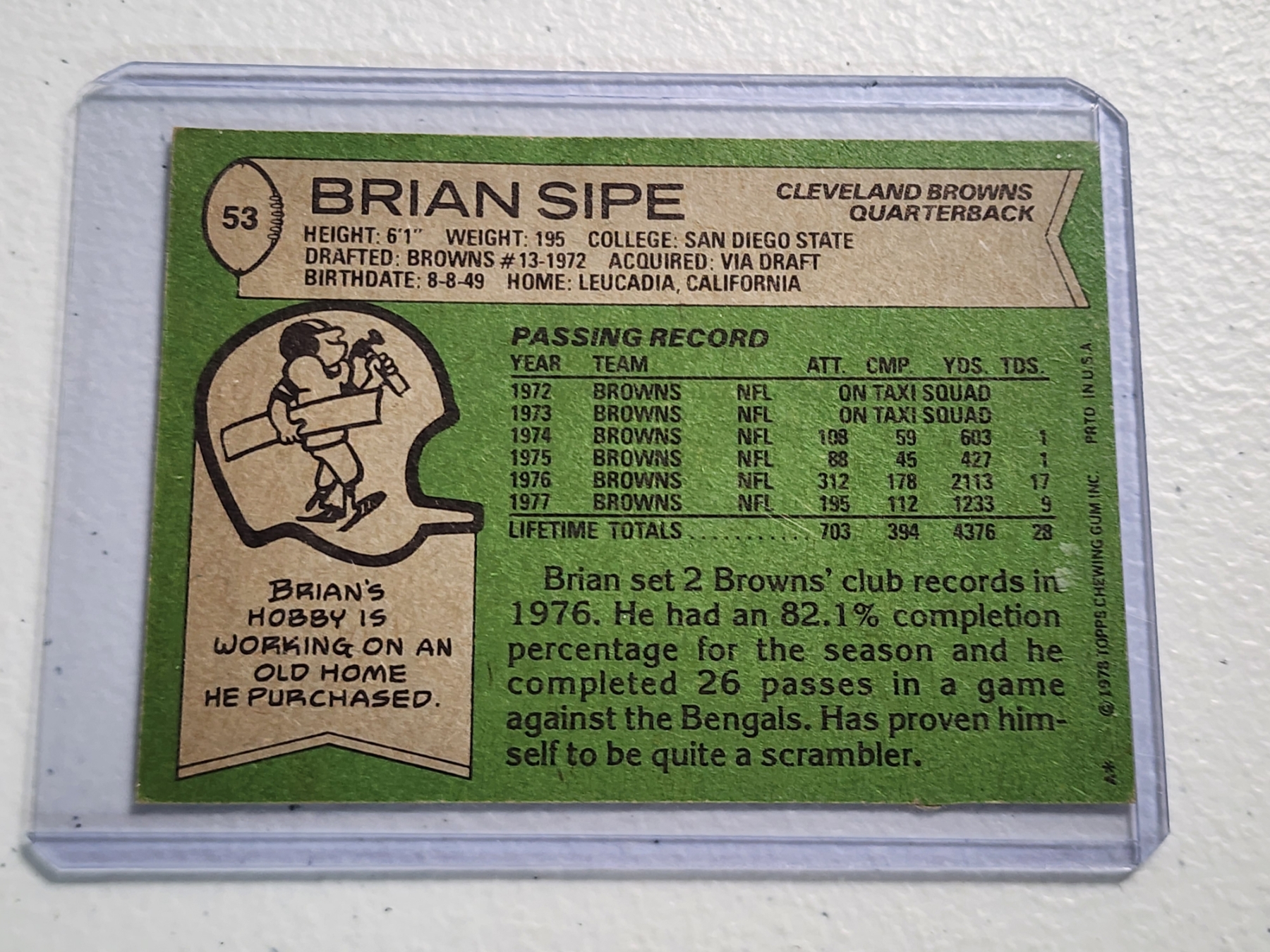 1978 Topps Football Vintage Brian Sipe Cleveland Browns Trading Card
