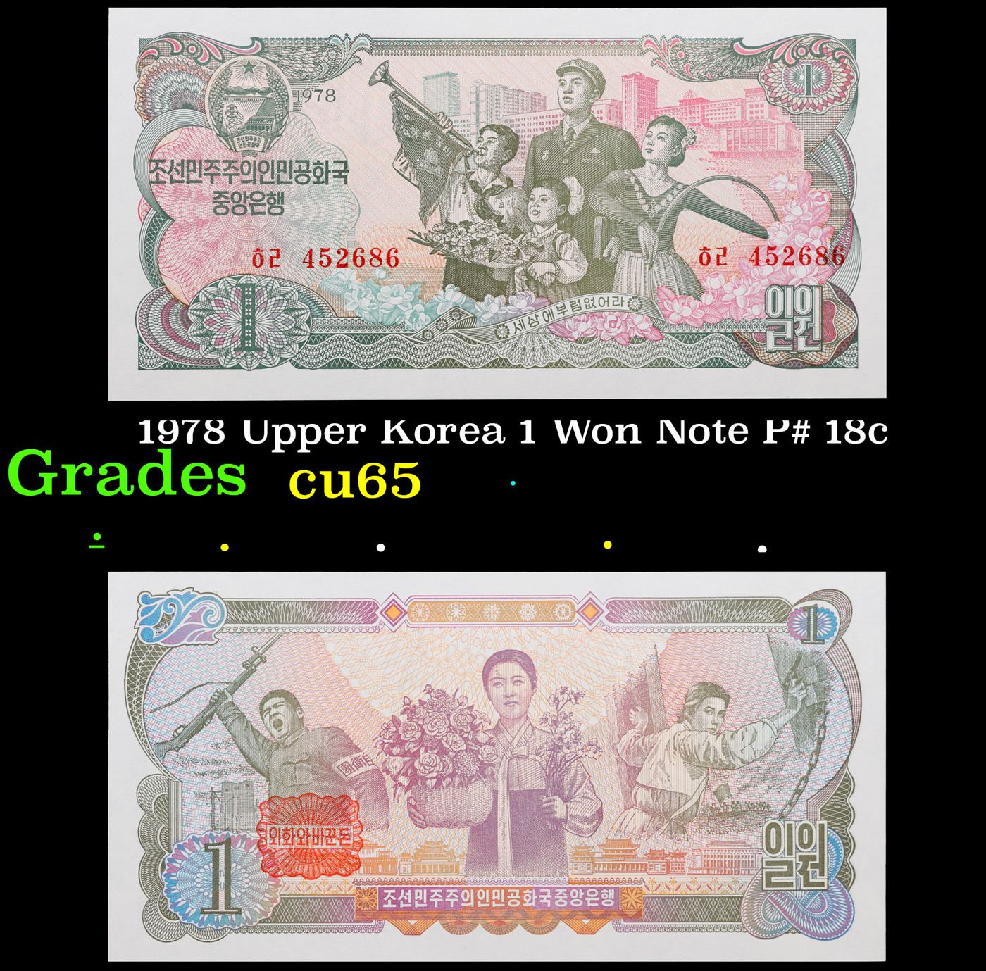 1978 Upper Korea 1 Won Note P# 18c Grades Gem CU.