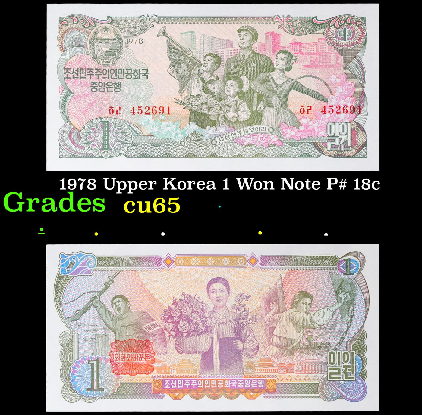 1978 Upper Korea 1 Won Note P# 18c Grades Gem CU.