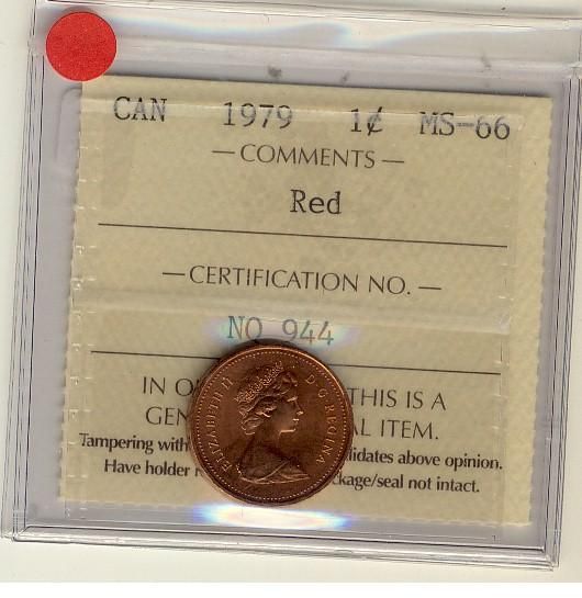 1979 1¢ ICCS MS66 Full Red, A superb GEM example.