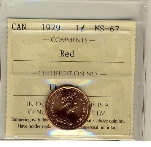 1979 1¢ ICCS MS67 Full Red, A superb GEM example.
