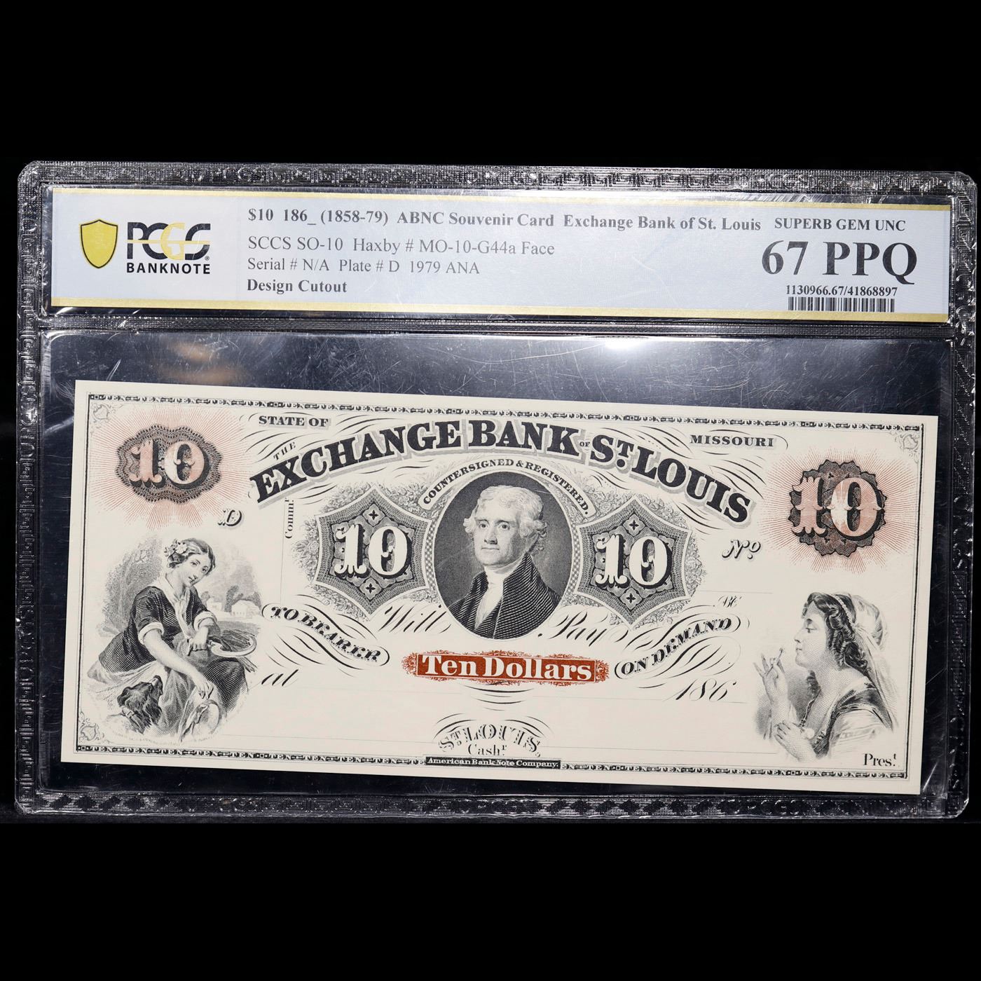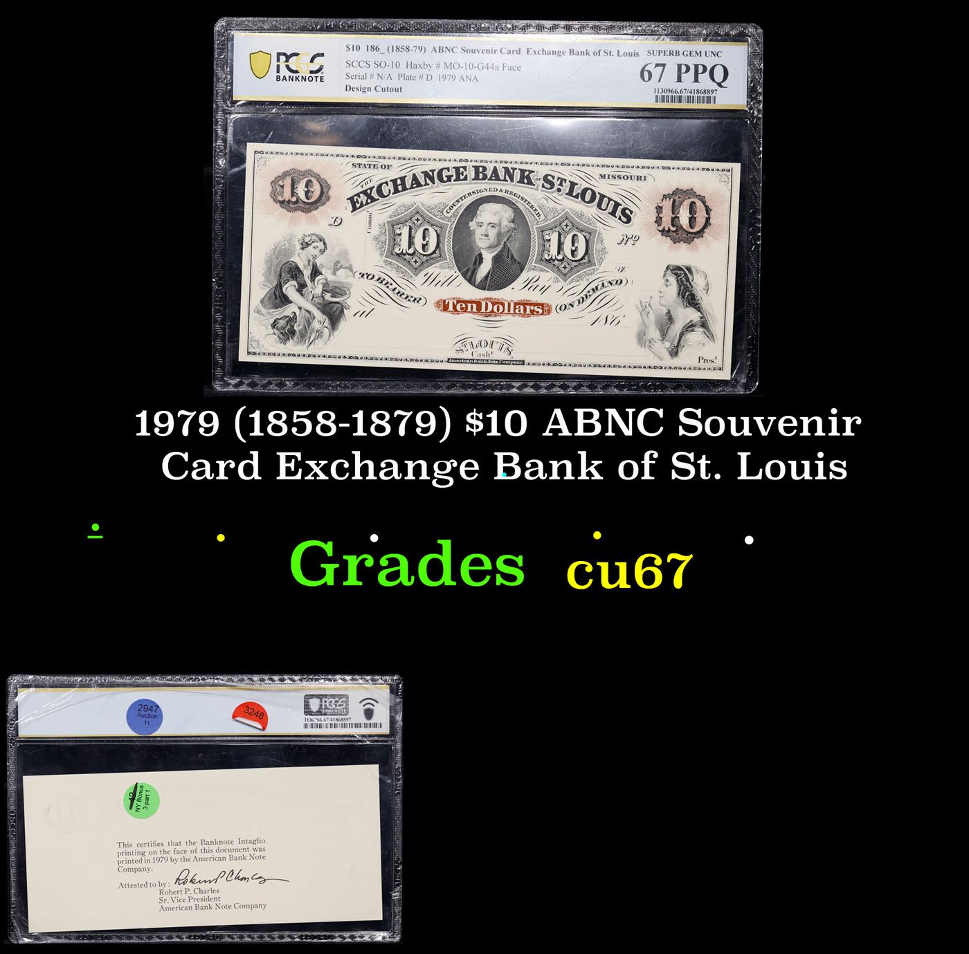 1979 (1858-1879) $10 ABNC Souvenir Card Exchange Bank of St. Louis Grades Gem++ CU.