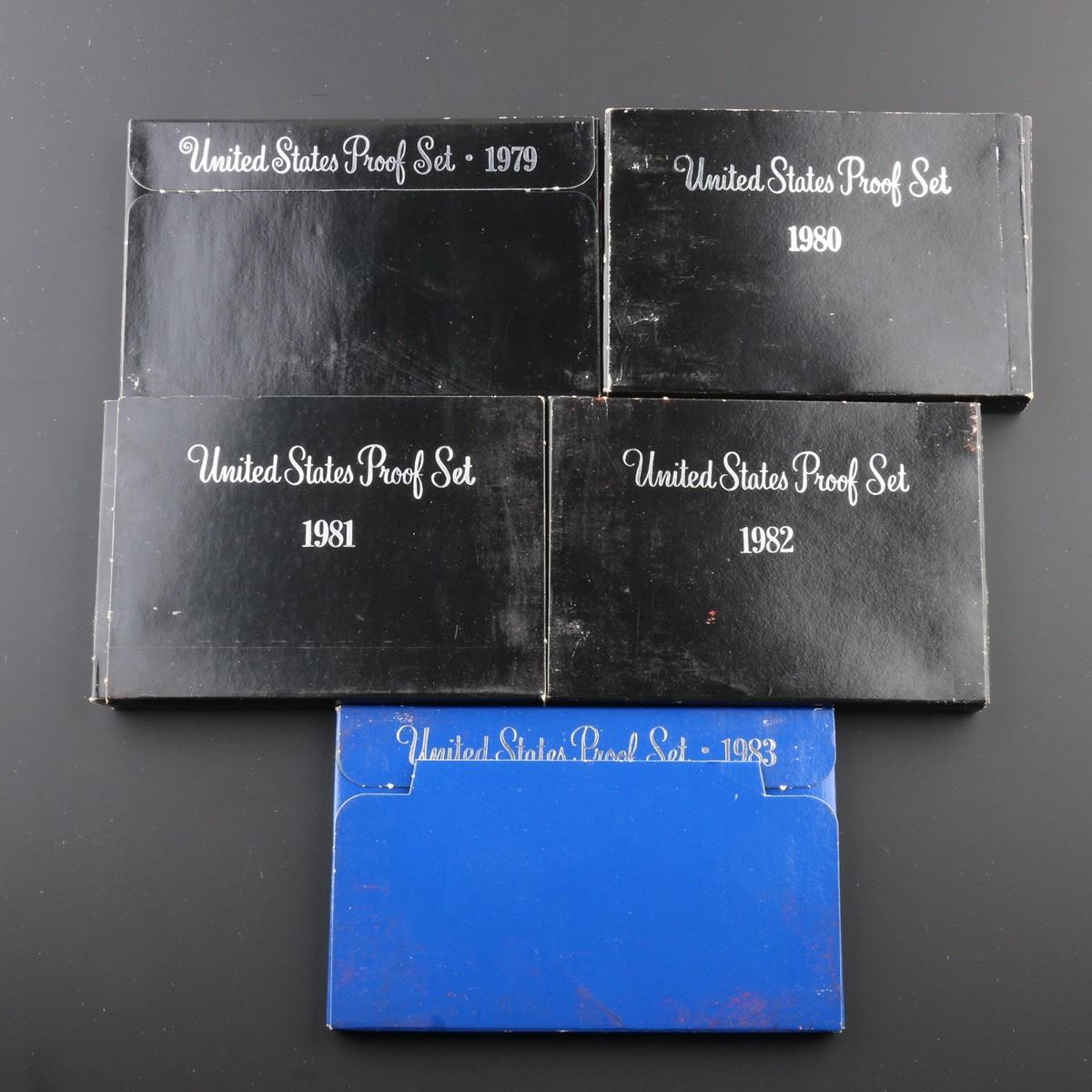 1979-1983 United States Proof Set . .. Every United States Proof Set from 1979-1983. Each Set includes 5 proof coins, 1 Quarter, 1 Dime, 1 Penny, 1 Nickel, and 1 Half.