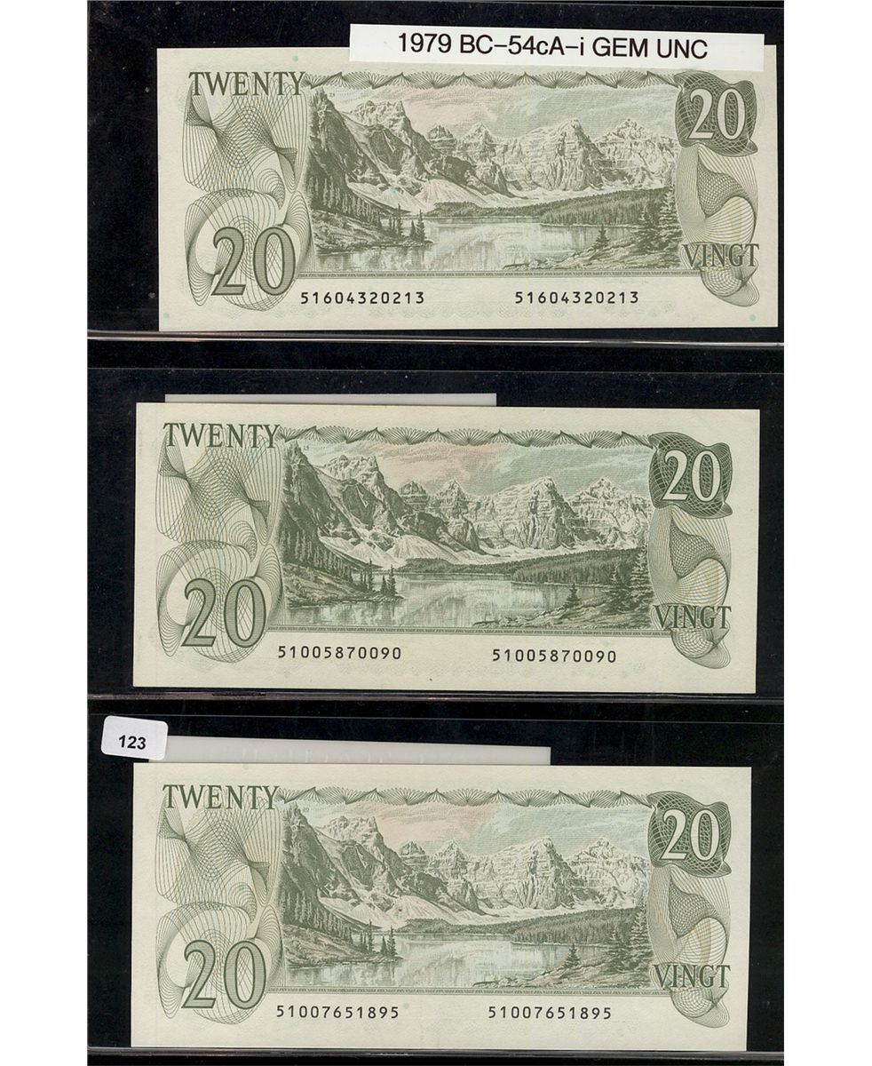 1979 $20 BC-54cA(2) & BC-54cA-I. Lot of 3 replacement issues. Strong AU to Crisp UNC.