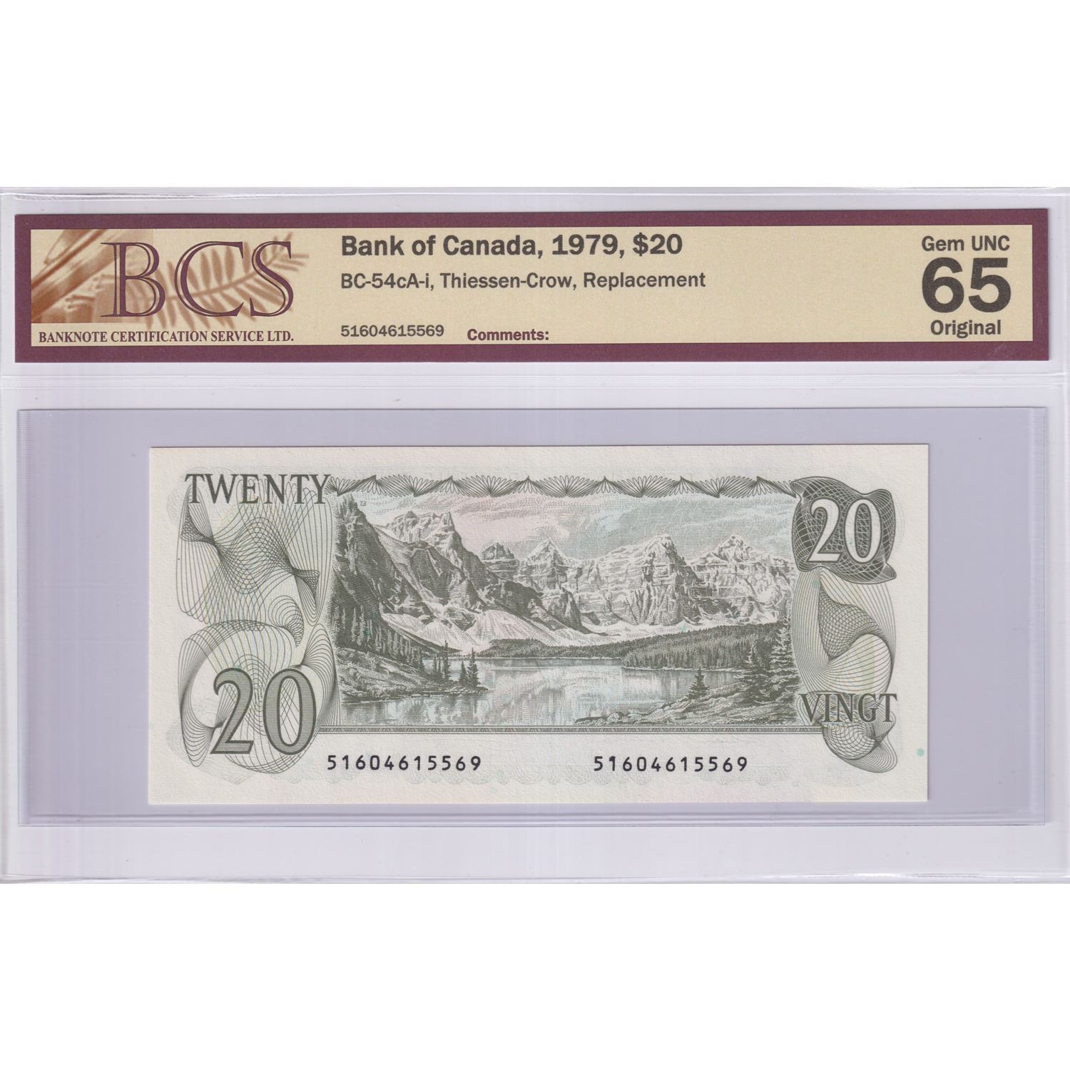 1979 $20 BC-54cA-i, Bank of Canada, Thiessen- Crow, S/N: 51604615569, BCS Certified GUNC-65 origin