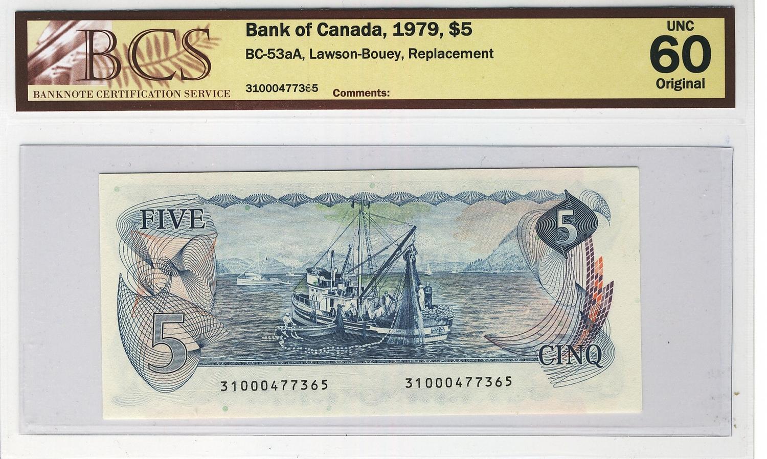 1979 $5 BC-53aA #31000477365 BCS Original UNC60.