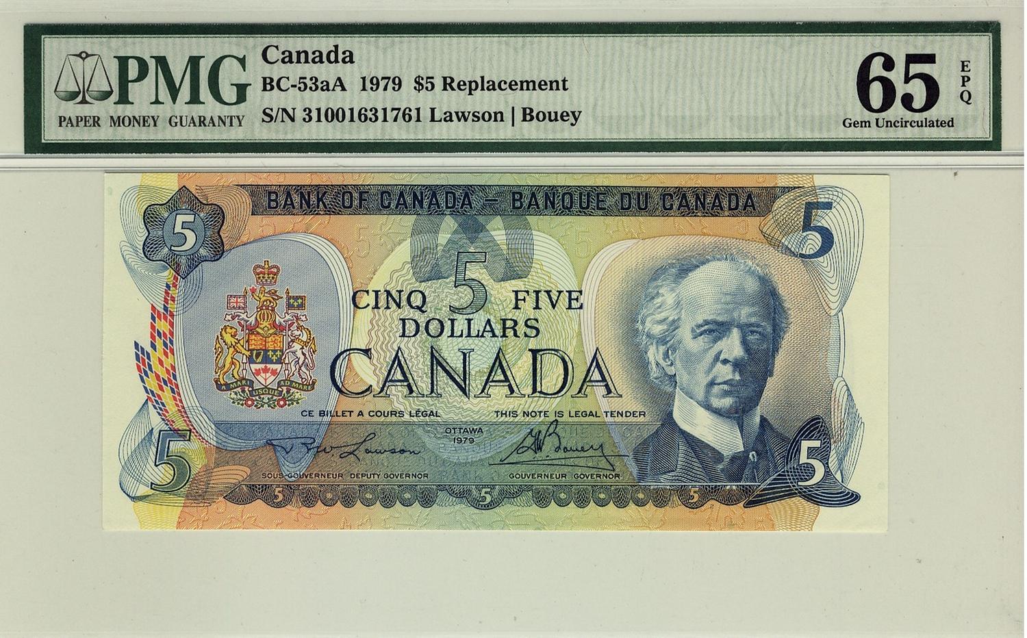 1979 $5 BC-53aA #31001631761, PMG Gem UNC65EPQ.