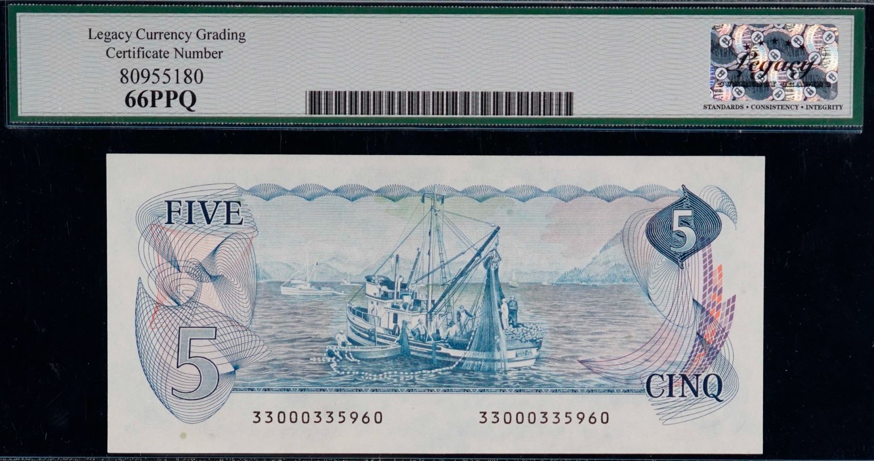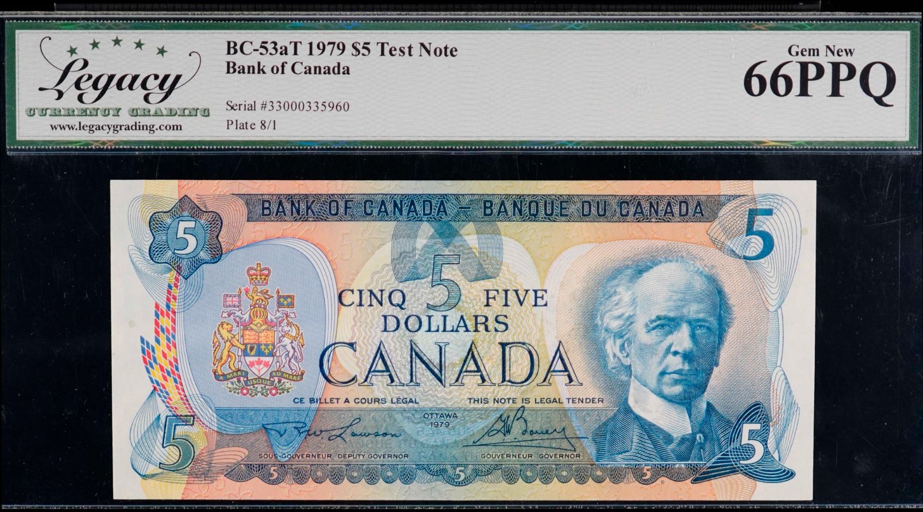 1979 $5 BC-53aT #33000335960 "TEST NOTE" LCG Superb Gem Uncirculated-66PPQ. This is a pristine issue with great eye appeal, good margins and superb embossing.