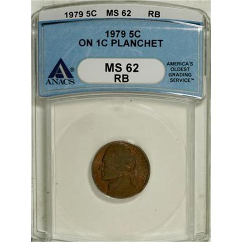 <B>1979 5C --On 1C Planchet--MS62 Red & Brown ANACS.</B></I><BR><BR><b>Shipping:</b> Coins & Currency (<a target="_blank" href="http://www.heritageauctions.com/common/shipping.php">view shipping information</a>)