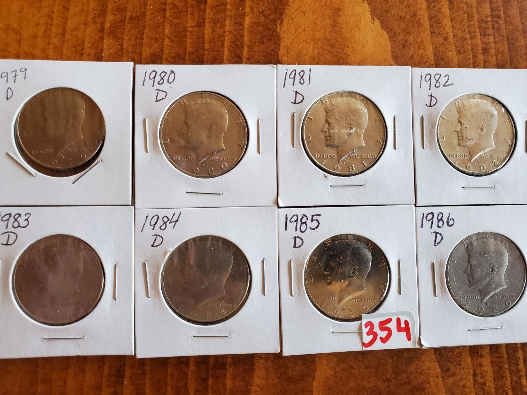 1979, 80, 81, 82, 83, 84, 85, 86 KENNEDY HALF DOLLARS - ALL DENVER MINT