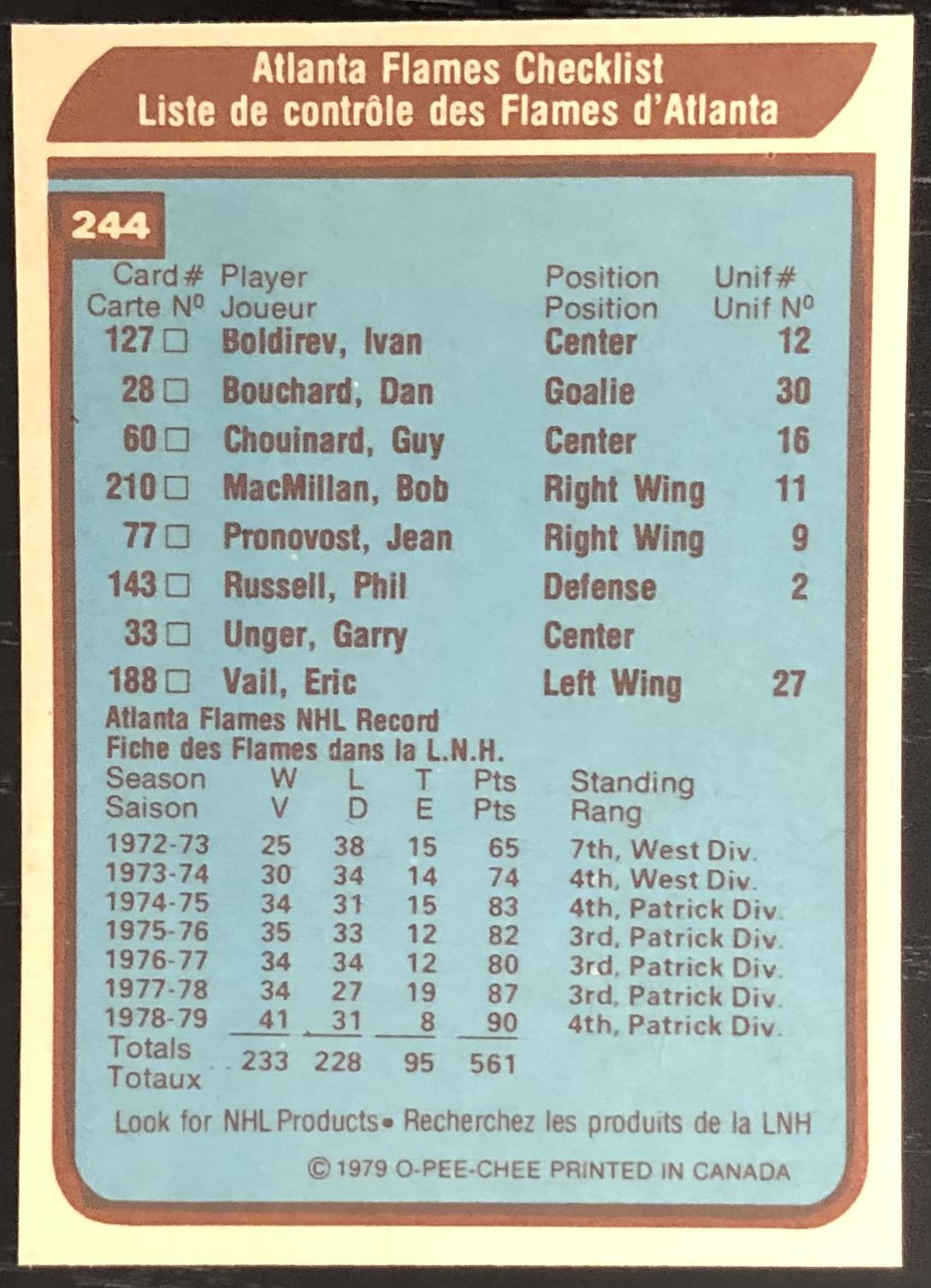 Card #244 NHL, hockey, vintage, OPC
