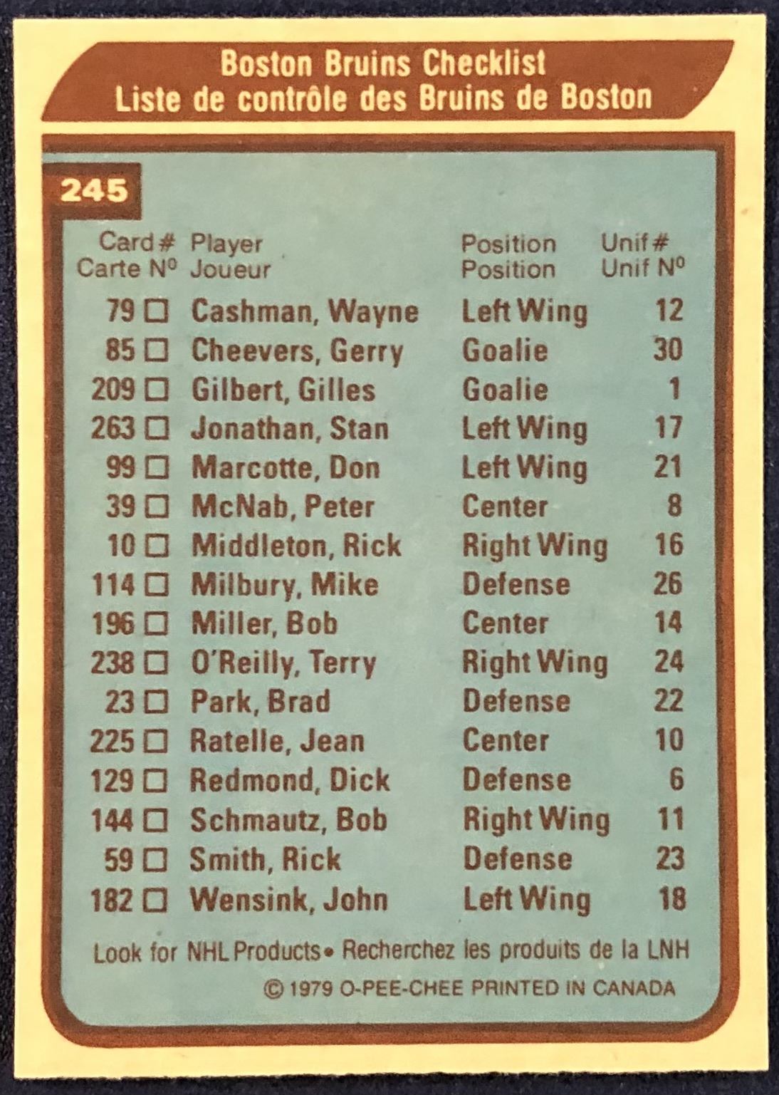 Card #245 NHL, hockey, OPC, vintage