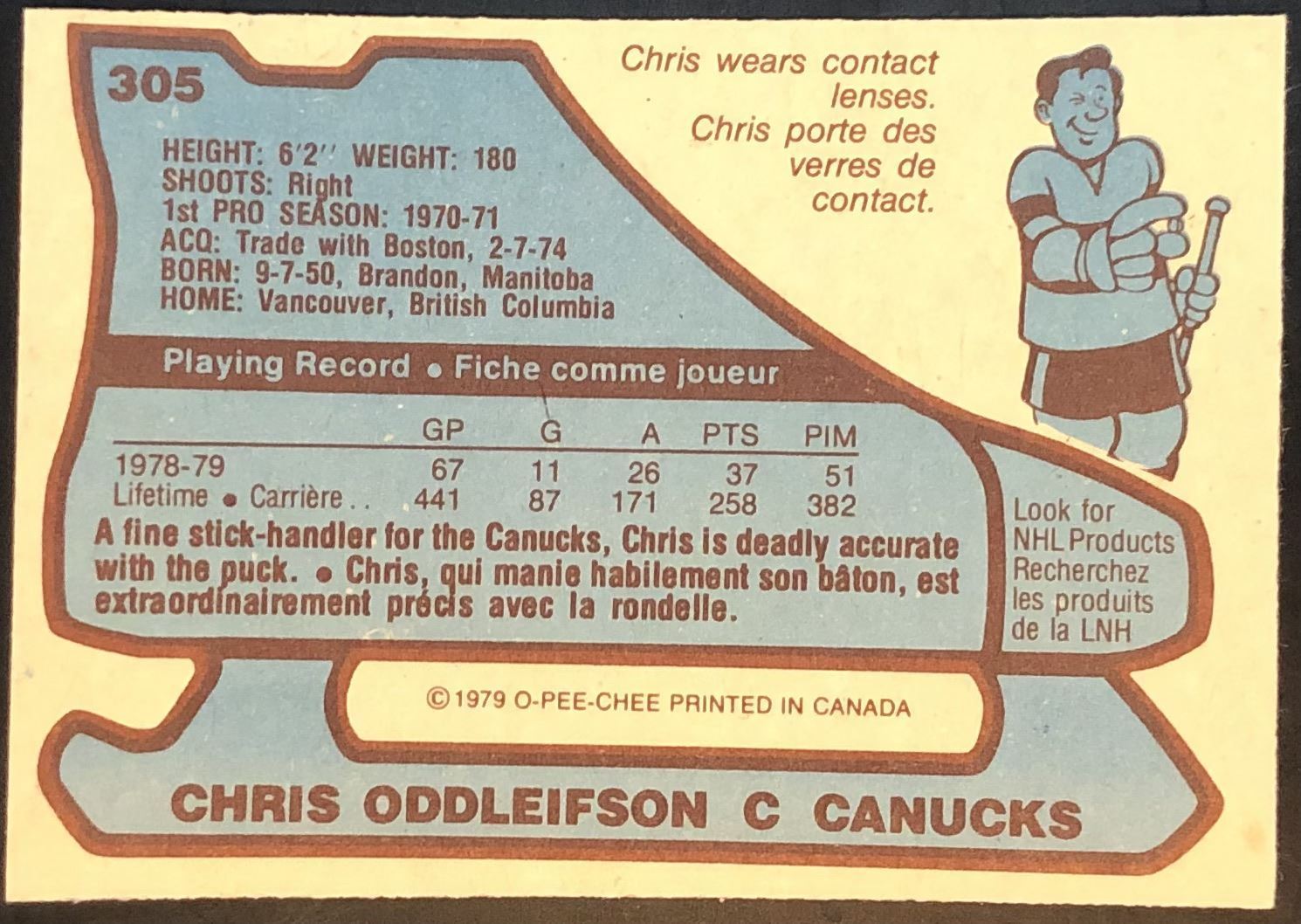 Card #305 OPC, NHL, hockey, vintage
