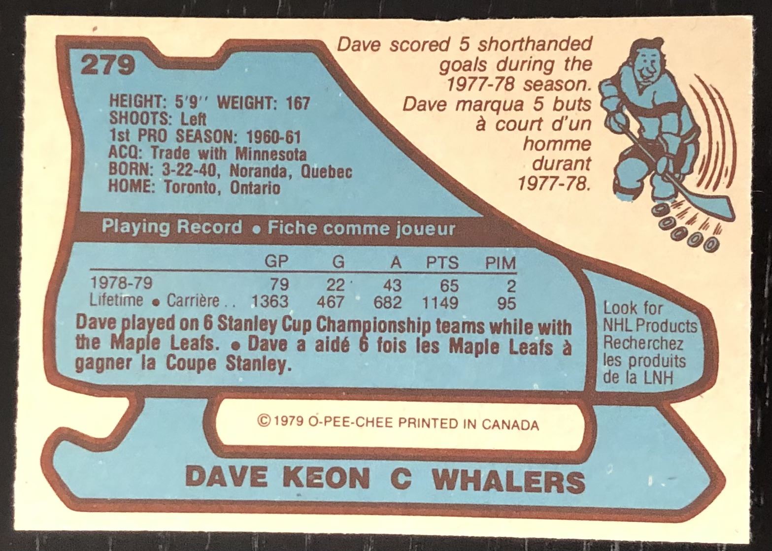 Card #279 NHL, hockey, vintage, OPC, hall of fame