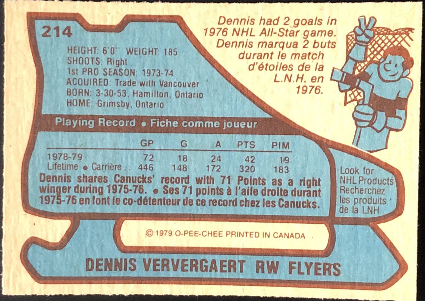 Card #214 OPC, NHL, hockey, vintage