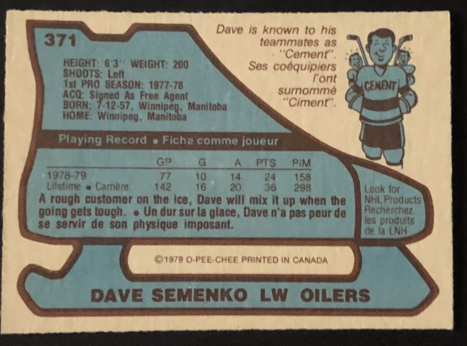 Card #371 hockey, OPC, vintage, rookie