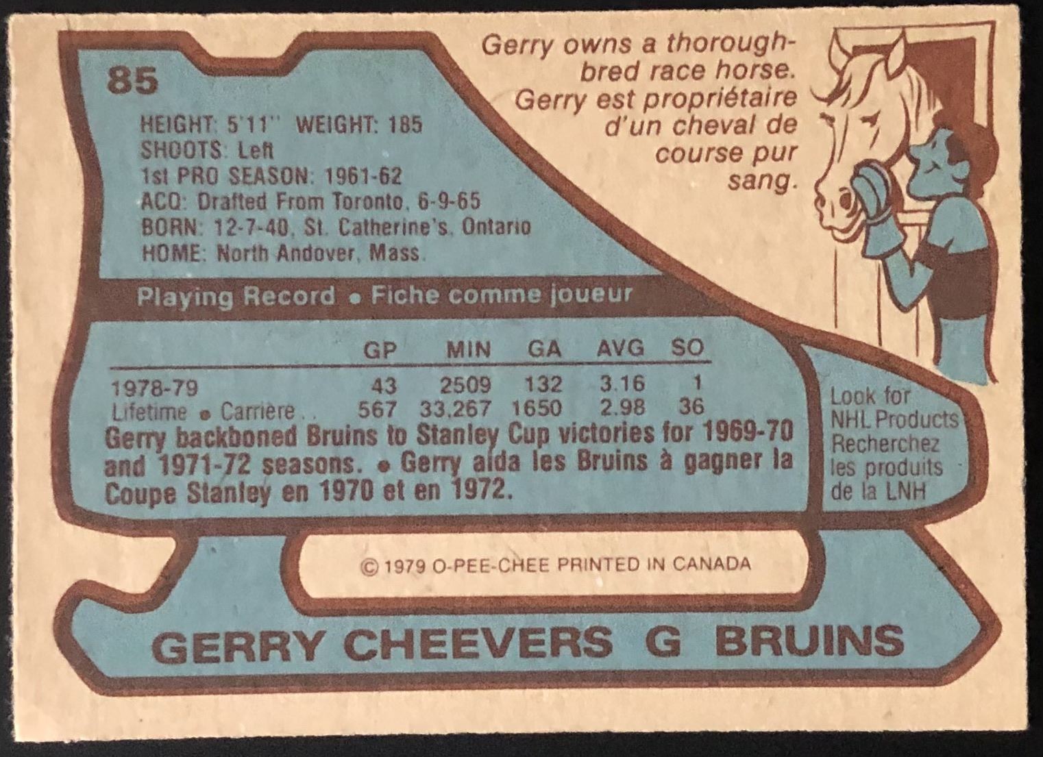 Card #85 NHL, hockey, OPC, vintage, hall of fame