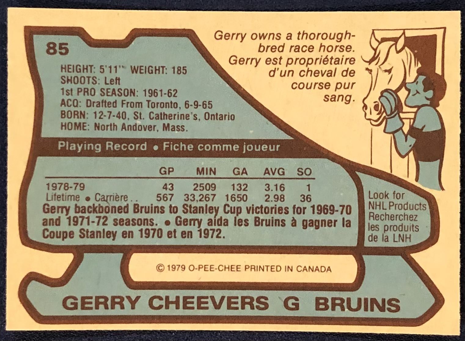 Card #85 NHL, hockey, OPC, vintage, hall of fame