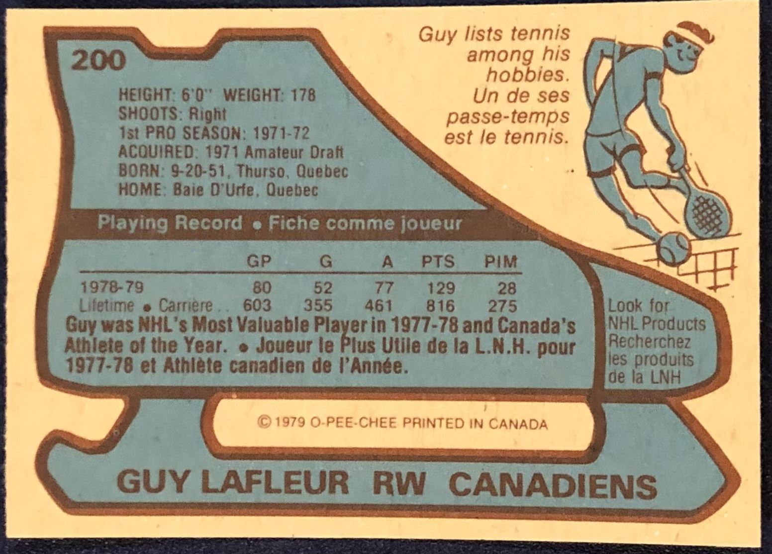 Card #200 NHL, hockey, vintage, OPC, hall of fame
