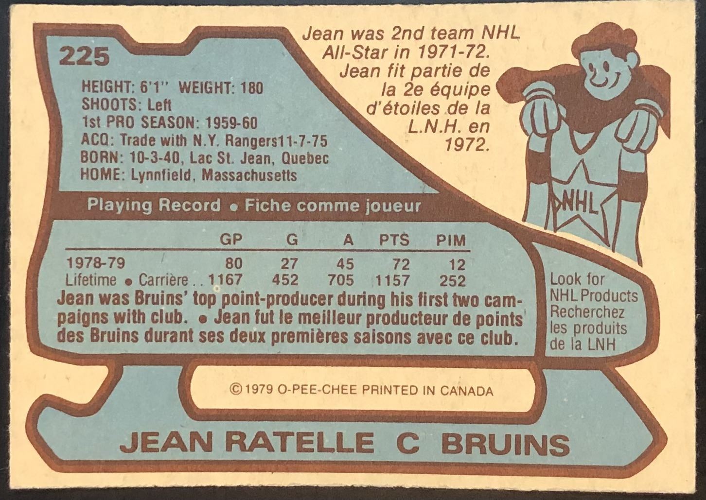 Card #225 NHL, hockey, vintage, OPC, hall of fame