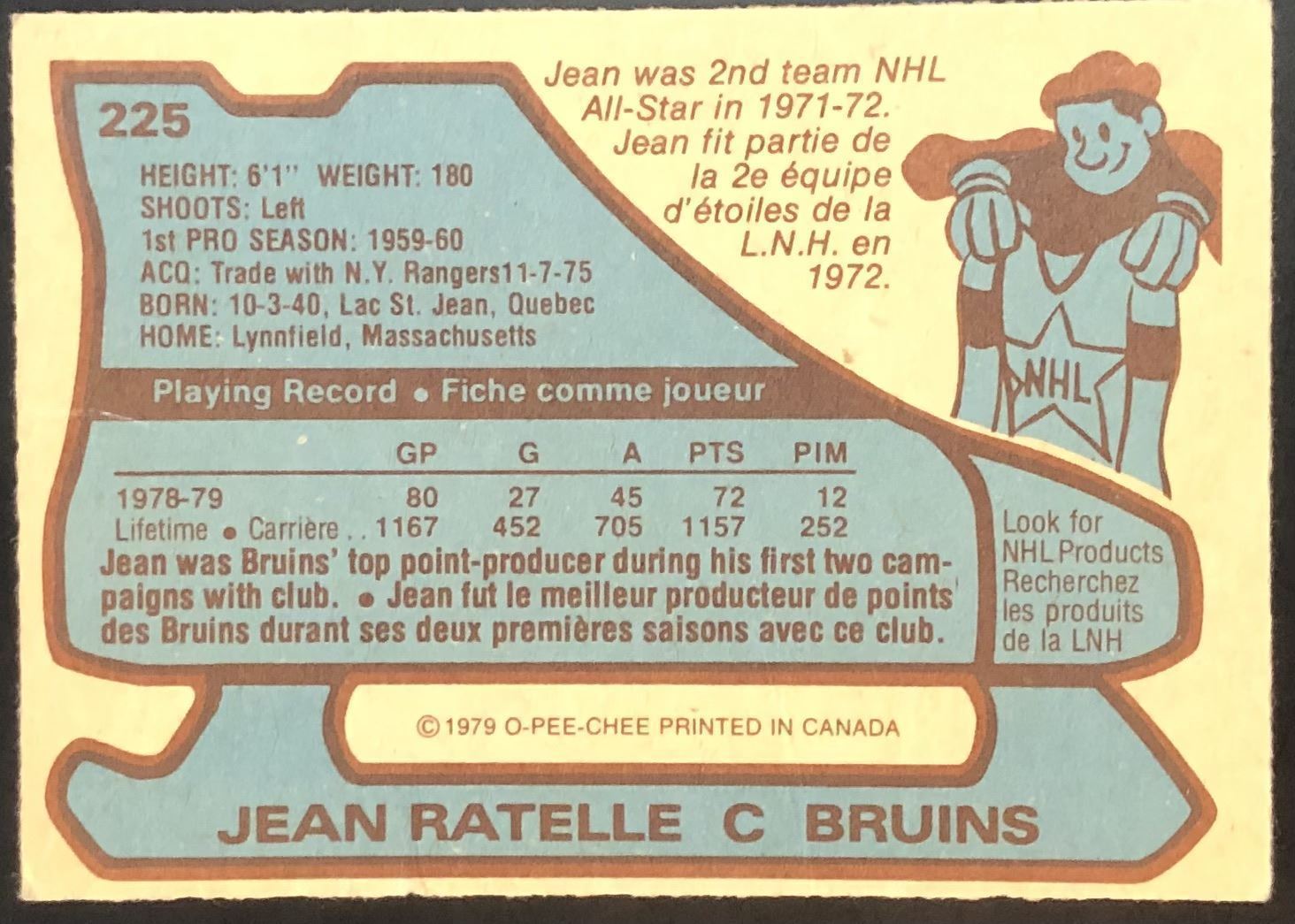 Card #225 OPC, vintage, NHL, hockey, hall of fame