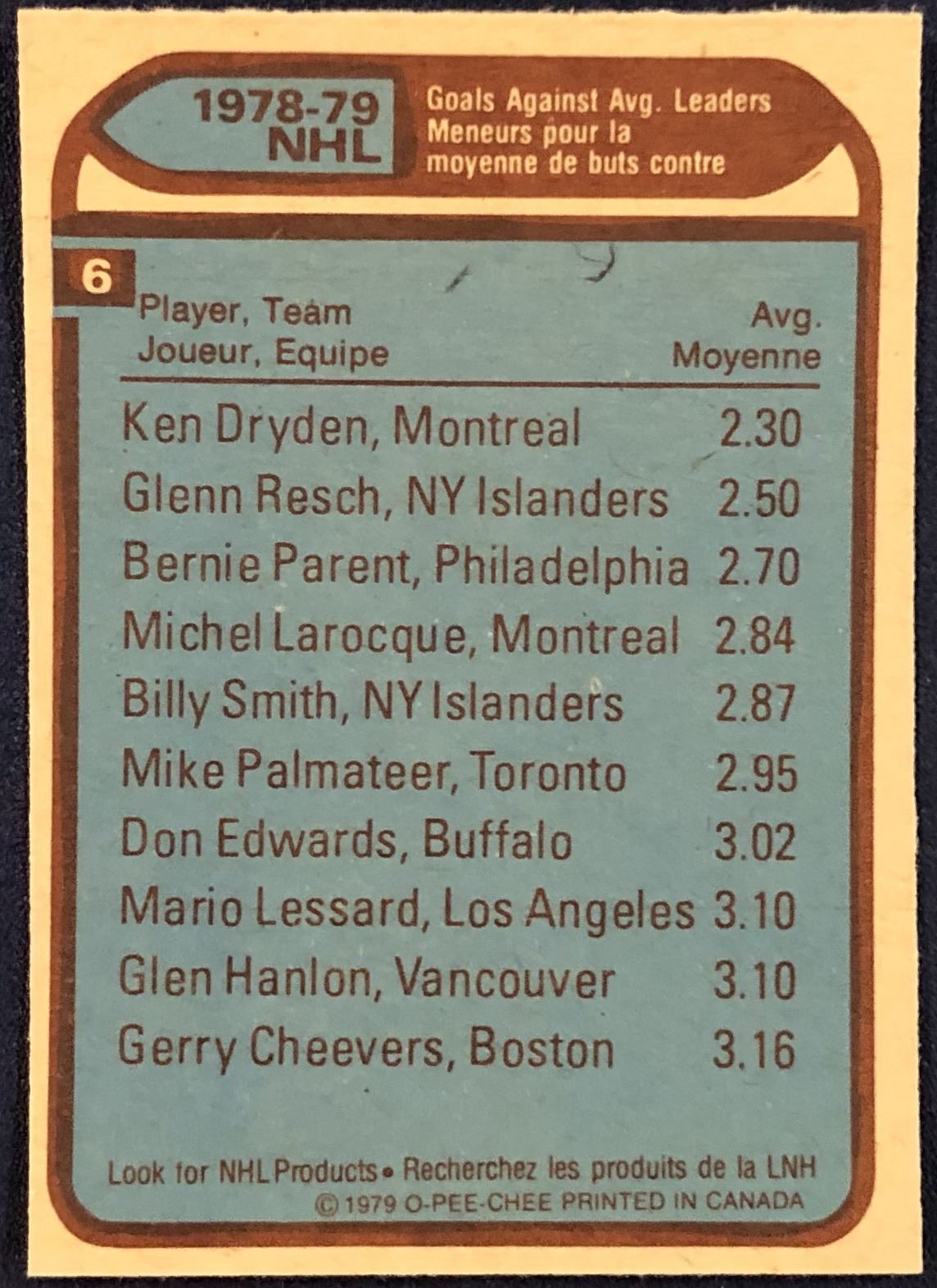 Card #6 NHL, hockey, OPC, vintage, hall of fame