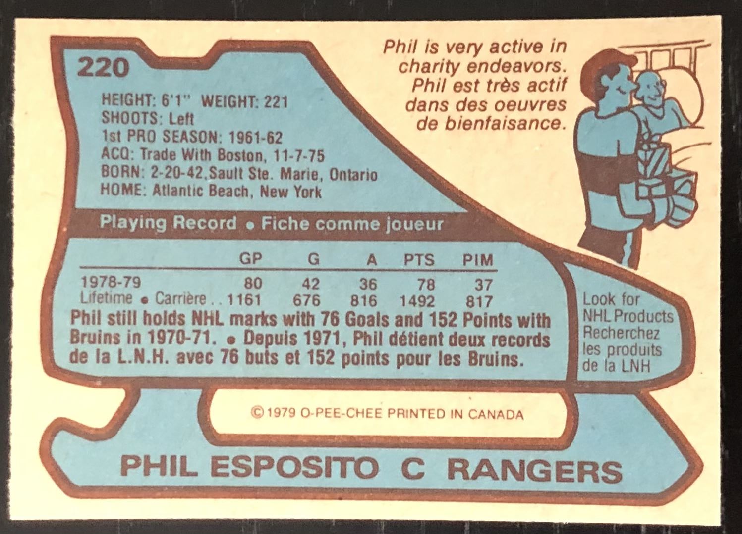 Card #220 NHL, hockey, vintage, OPC, hall of fame