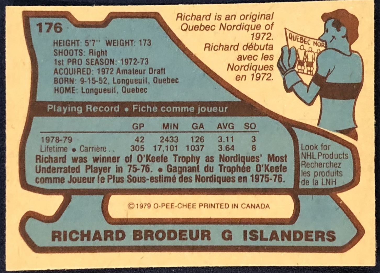Card #176 OPC, NHL, hockey, vintage