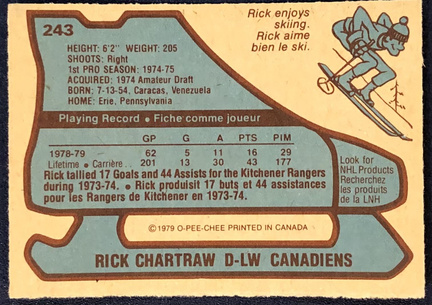 Card #243 OPC, NHL, hockey, vintage