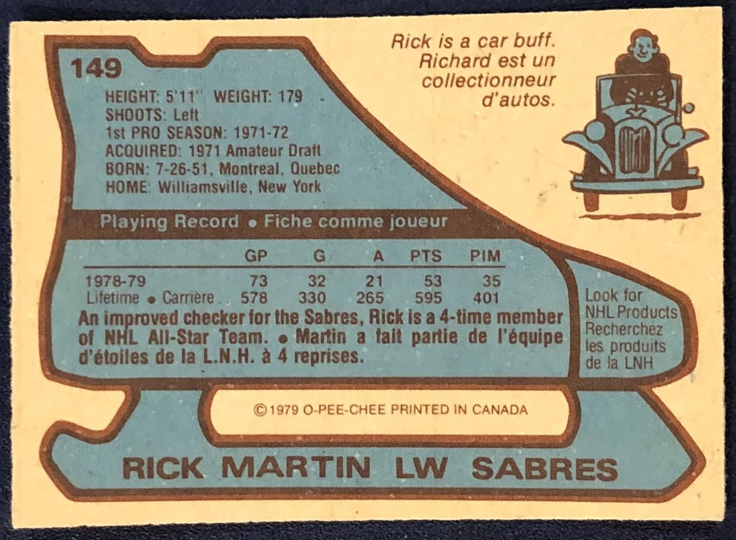Card #149 OPC, NHL, hockey, vintage, hall of fame