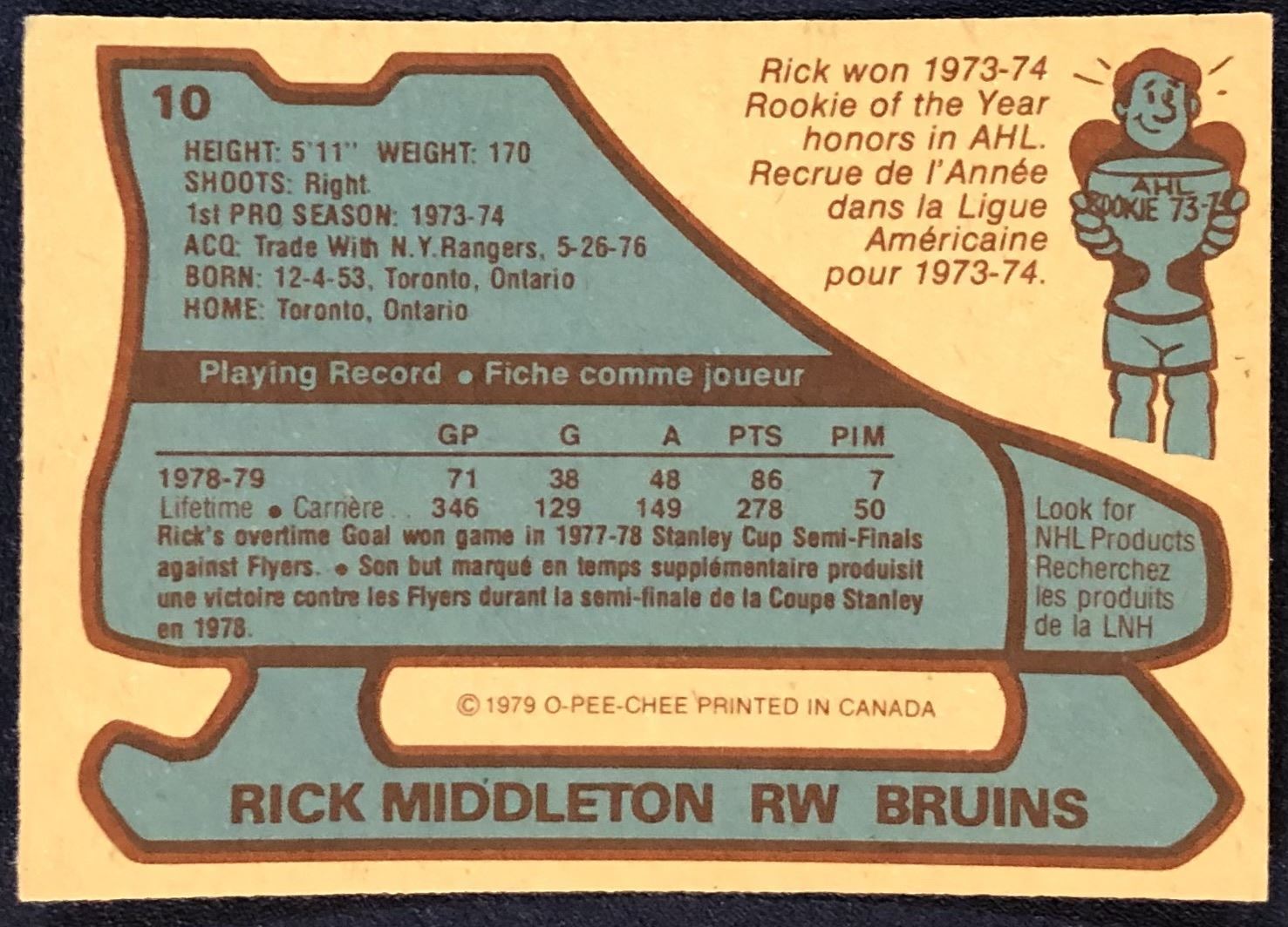 Card #10 NHL, hockey, vintage, OPC, hall of fame