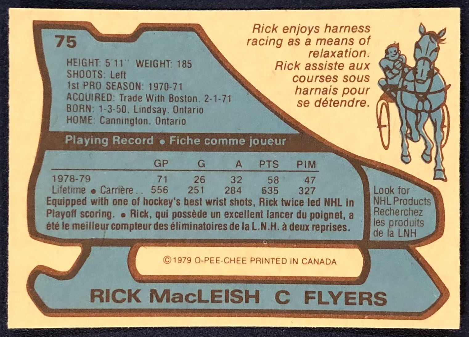 Card #75 NHL, hockey, OPC, vintage, hall of fame