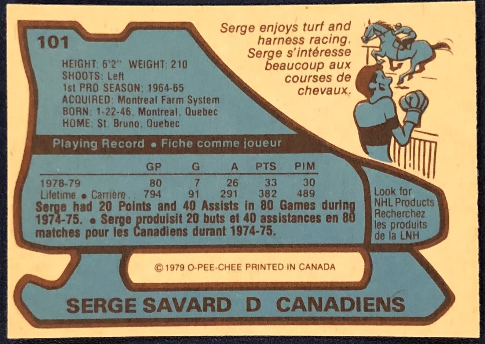 Card #101 NHL, hockey, OPC, vintage, hall of fame