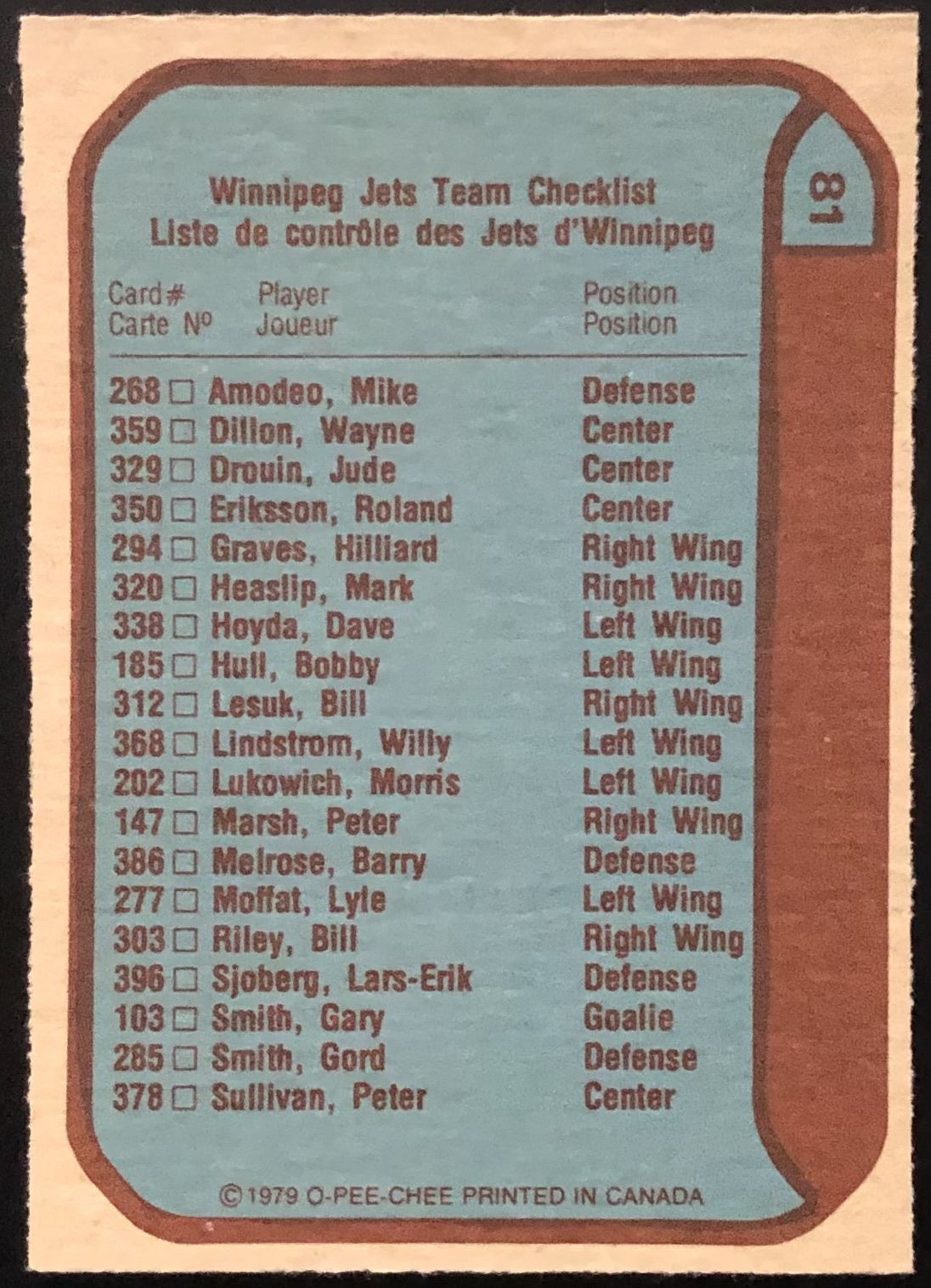 Card #81 NHL, hockey, OPC, vintage