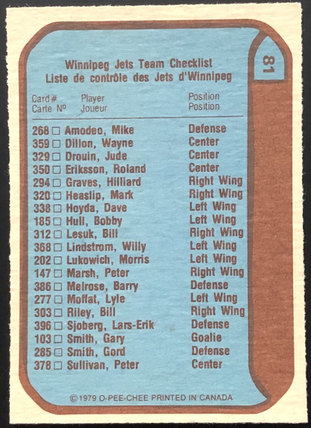 Card #81 OPC, NHL, hockey, vintage