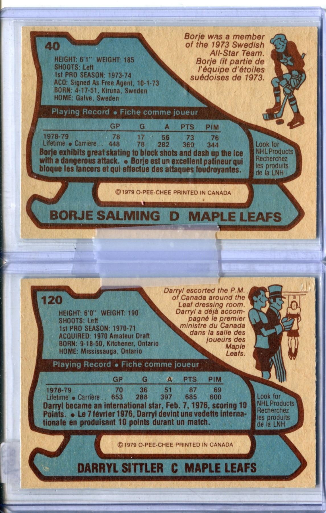 1979-80 OPC Salming #40 & Sittler #120 Mint. Toronto.