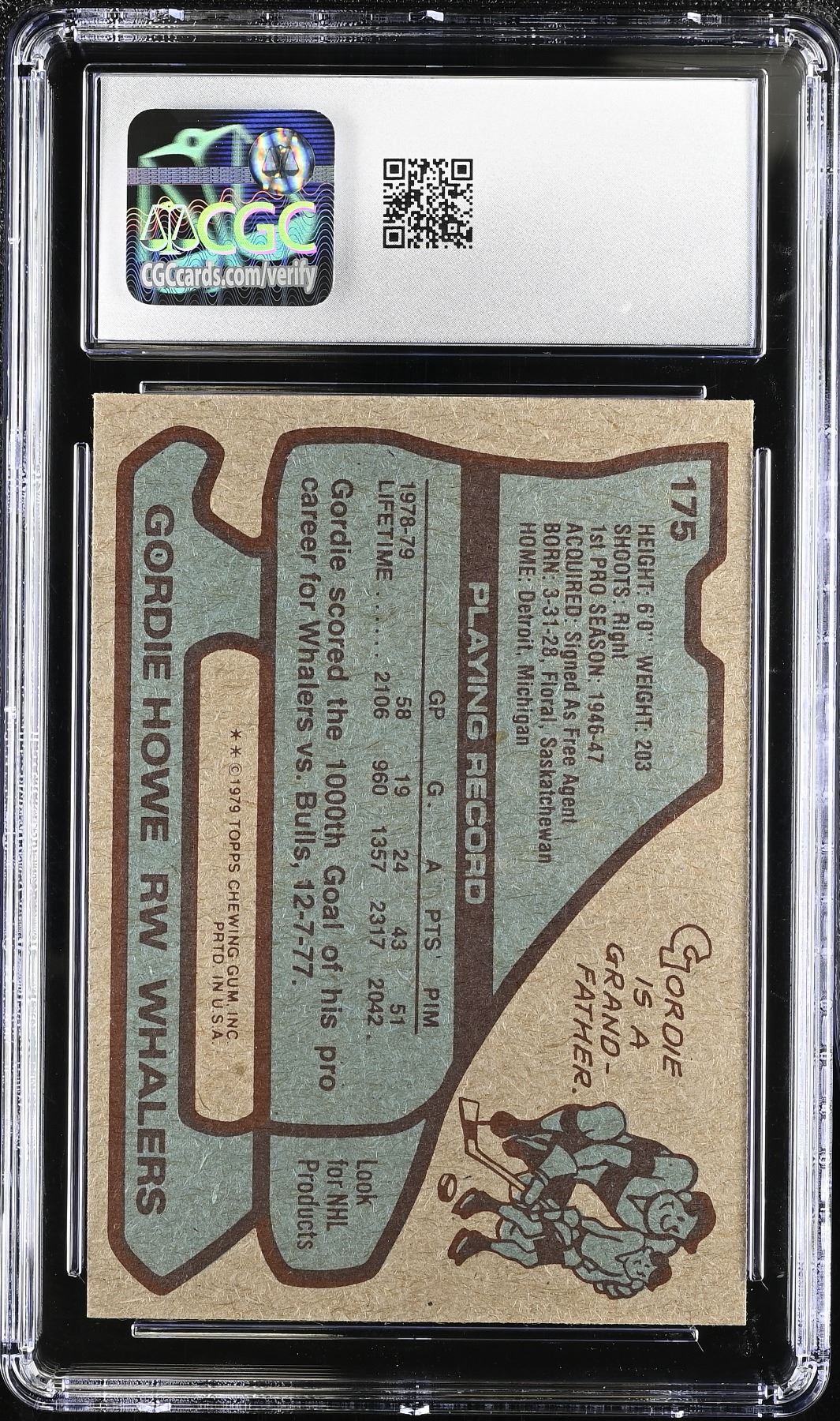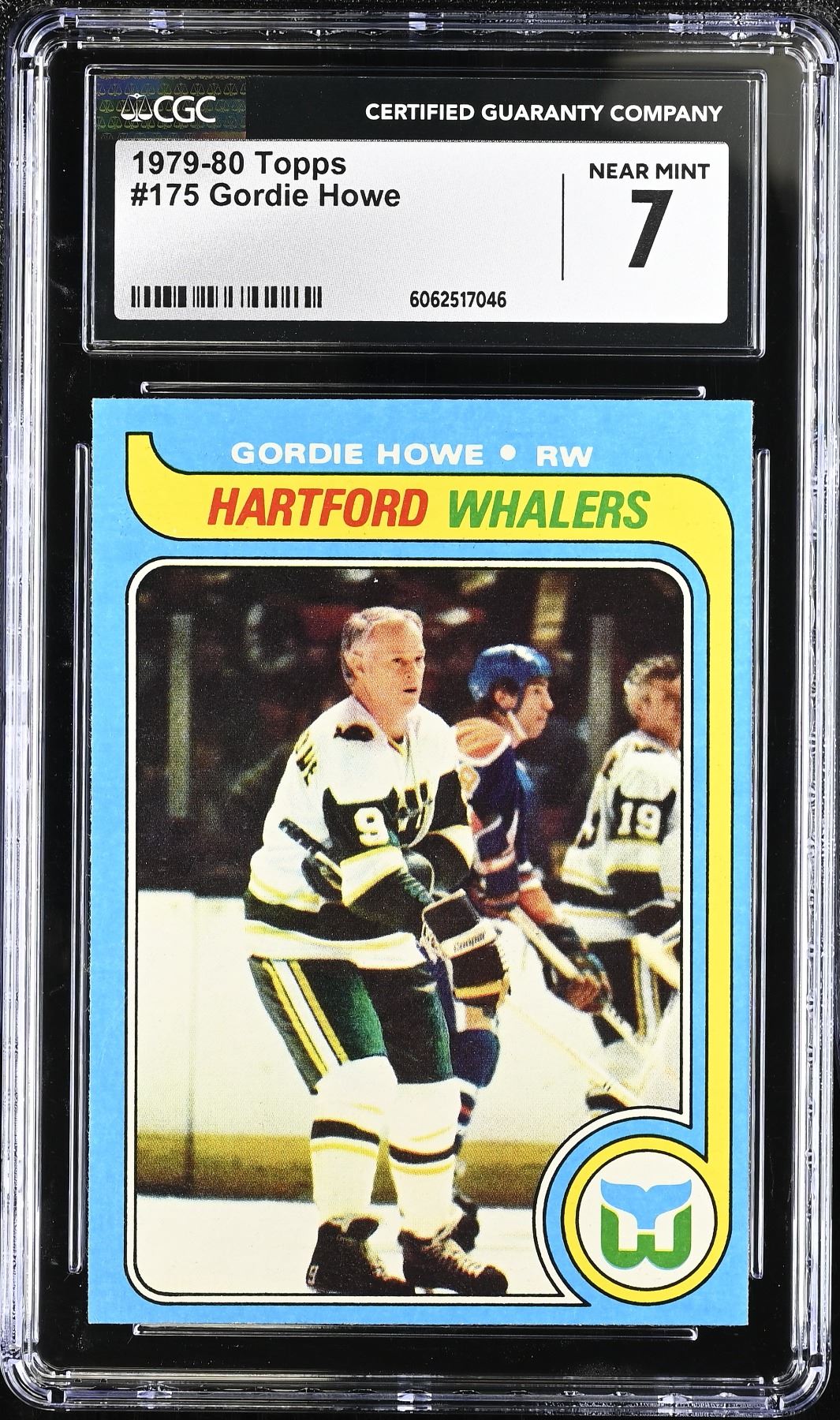 Gordie's last card from the 1979-80 season. He came back to the NHL and at the age of 51 played all 80 games and scored 41 points, truly an amazing end to an amazing career. Graded 7 NM by CGC.