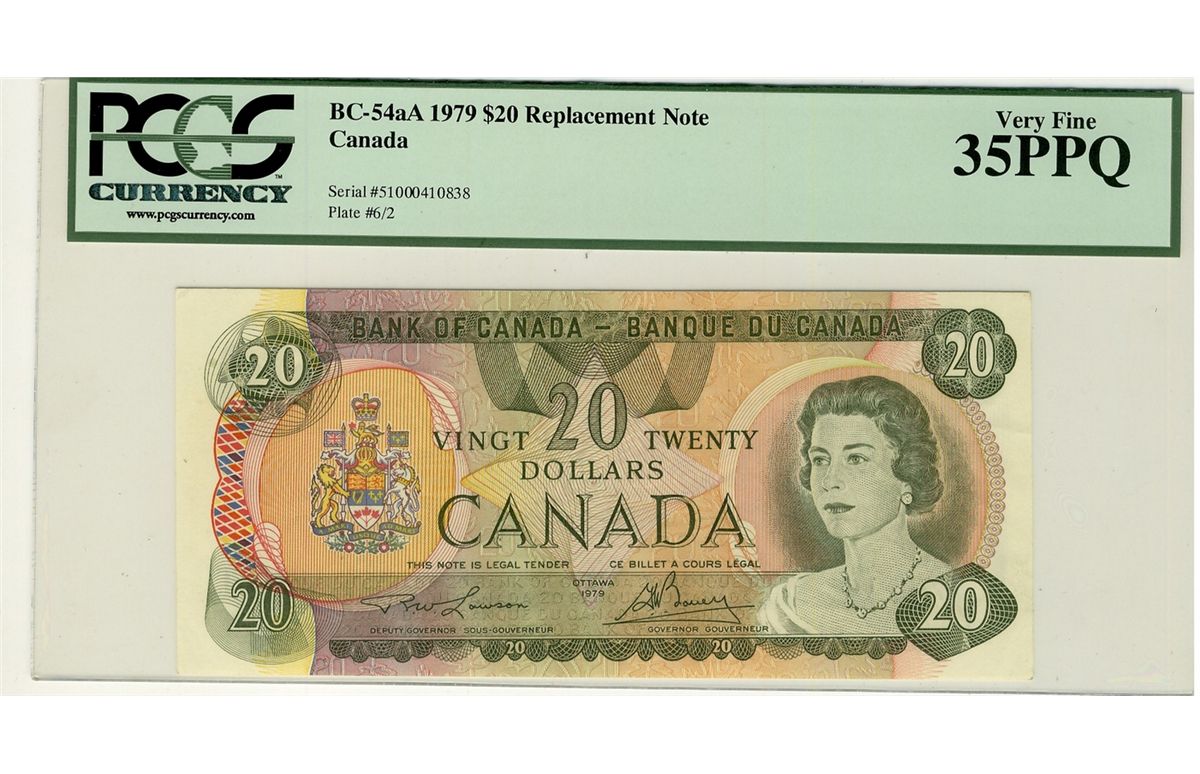 1979 Bank of Canada; $20 BC-54aA #51000410838 PCGS VF35PPQ.