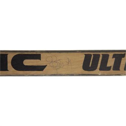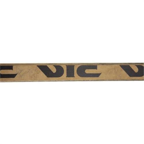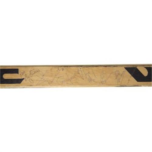 <B>1979 Bob Nystrom Game Used Stick Signed by New York Islanders Team.</B></I> Big Apple hockey history doesn't get much bigger than this! Genuine gamer from the fourteen-season Islanders veteran dates to the first of four consecutive Stanley Cup seasons, a time when "Mr. Islander" was earning a reputation as one of the game's greatest clutch performers. The Victoriaville Ultra stick exhibits fine use, with "Nystrom" in block lettering on upper shaft and original tape at blade and handle end. A faded number "23" appears in marker at upper handle as well. Decorating the stick are the blue ink autographs of sixteen players who earned the first of four consecutive Stanley Cup Championships for the Islanders, including Nystrom himself, Trottier, Bossy, Gillies, Potvin and Bourne. Signature quality averages a strong 8/10. An absolute essential for the serious Islanders fan. <I>LOA from Rich Ellis. LOA from PSA/DNA (autographs). LOA from James Spence Authentication (autographs).</B></I><BR><BR><b>Shipping:</b> Bats, Clubs, Sticks, Swords, Rif (<a target="_blank" href="http://www.heritageauctions.com/common/shipping.php">view shipping information</a>)