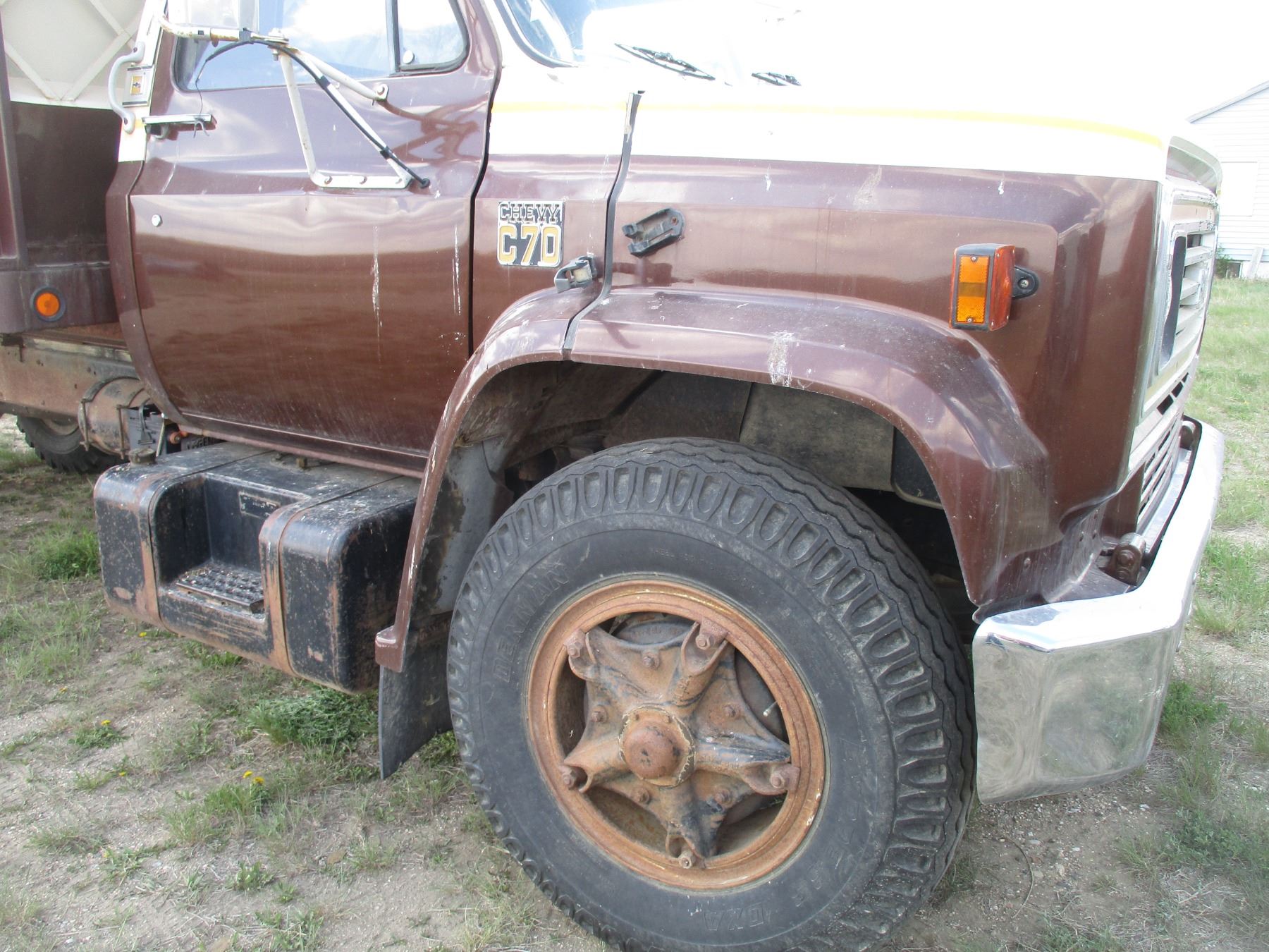 1979 C70 Chevrolet 3T Truck with Box Hoist (15FT) with roll tarp - 366 engine 5spd x2 transmission - 69,900KM (SN: C17DB9V159974)